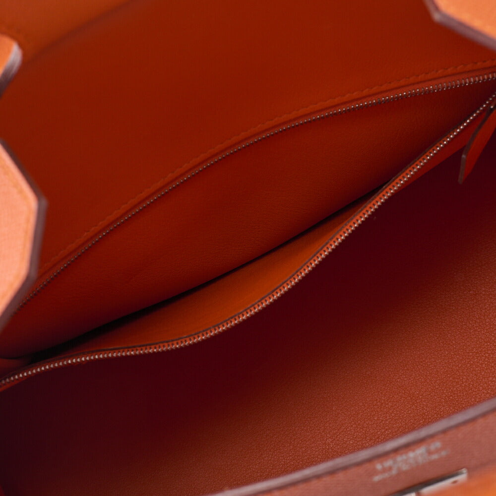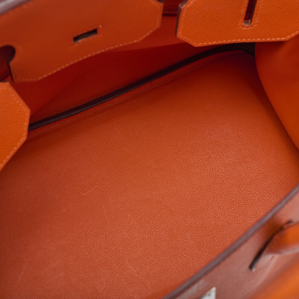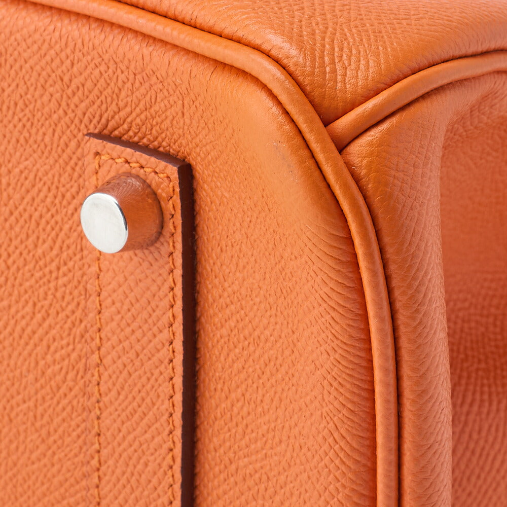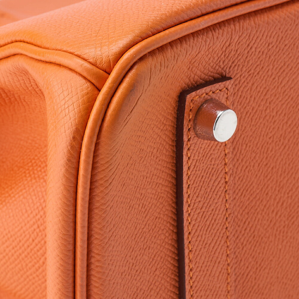 Gebrauchte Birkin 35 Handtasche Vo Epson Orange Vaux Epson Silberfarbene Hardware Gebraucht