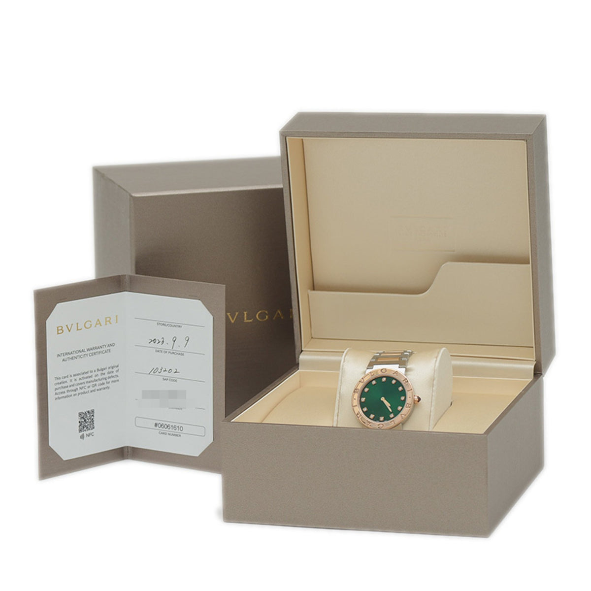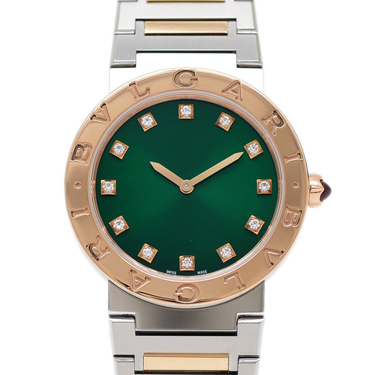 Pre-Owned Bvlgari 33mm Green Dial K18PG Stainless Steel Quartz Watch 103202