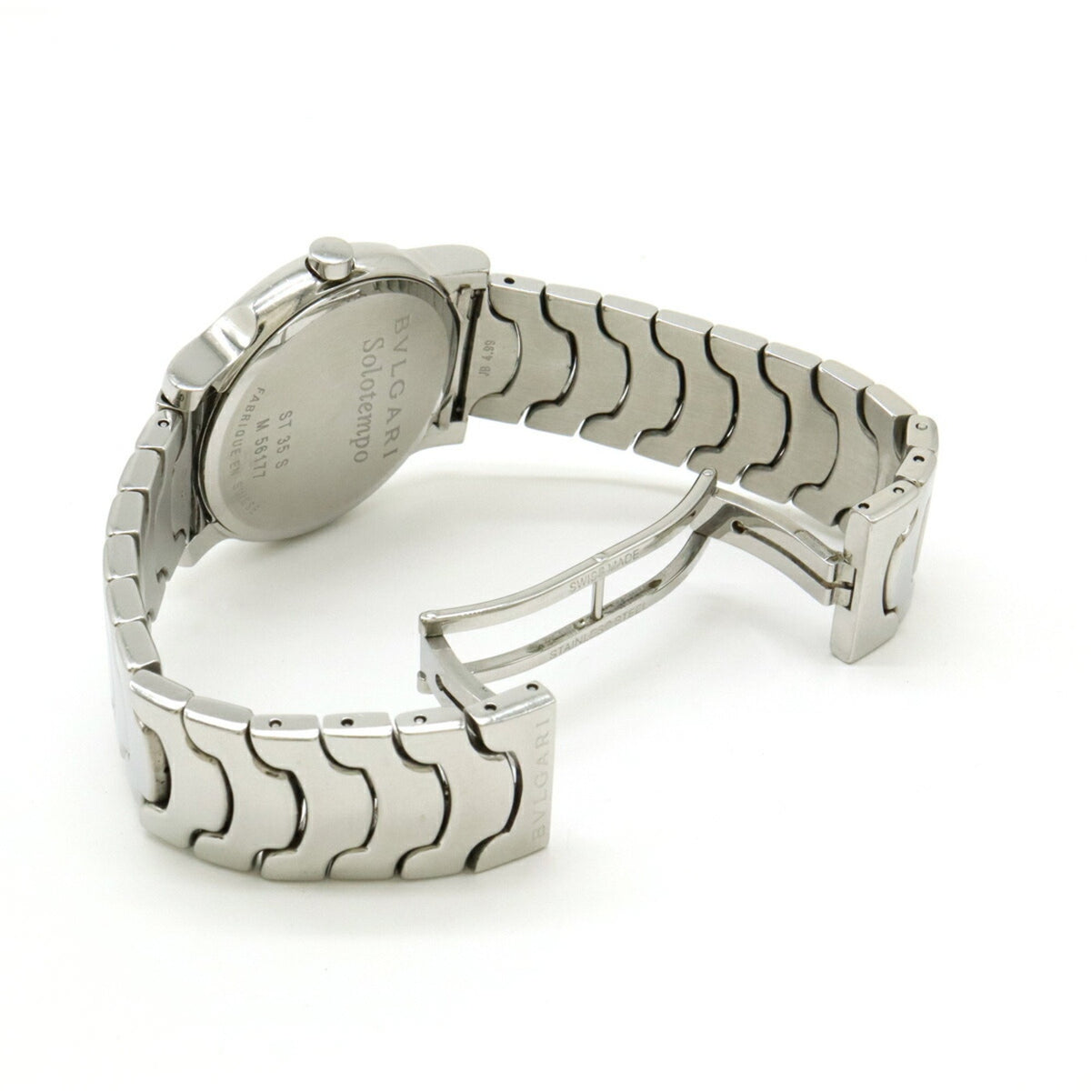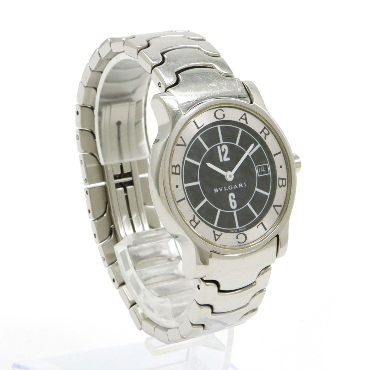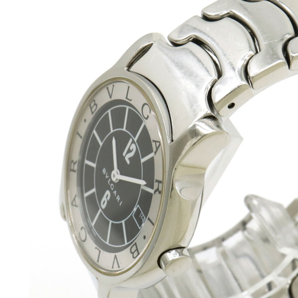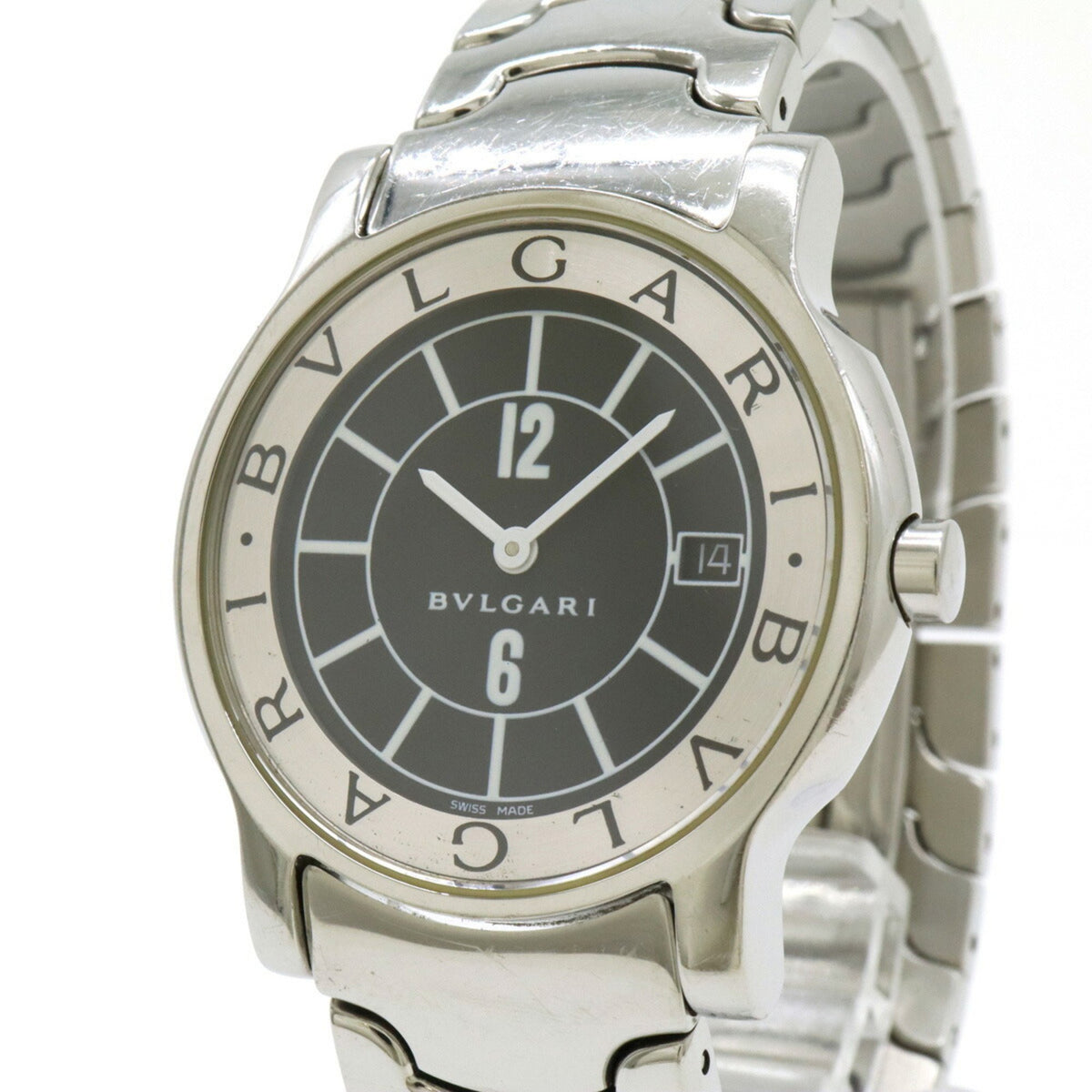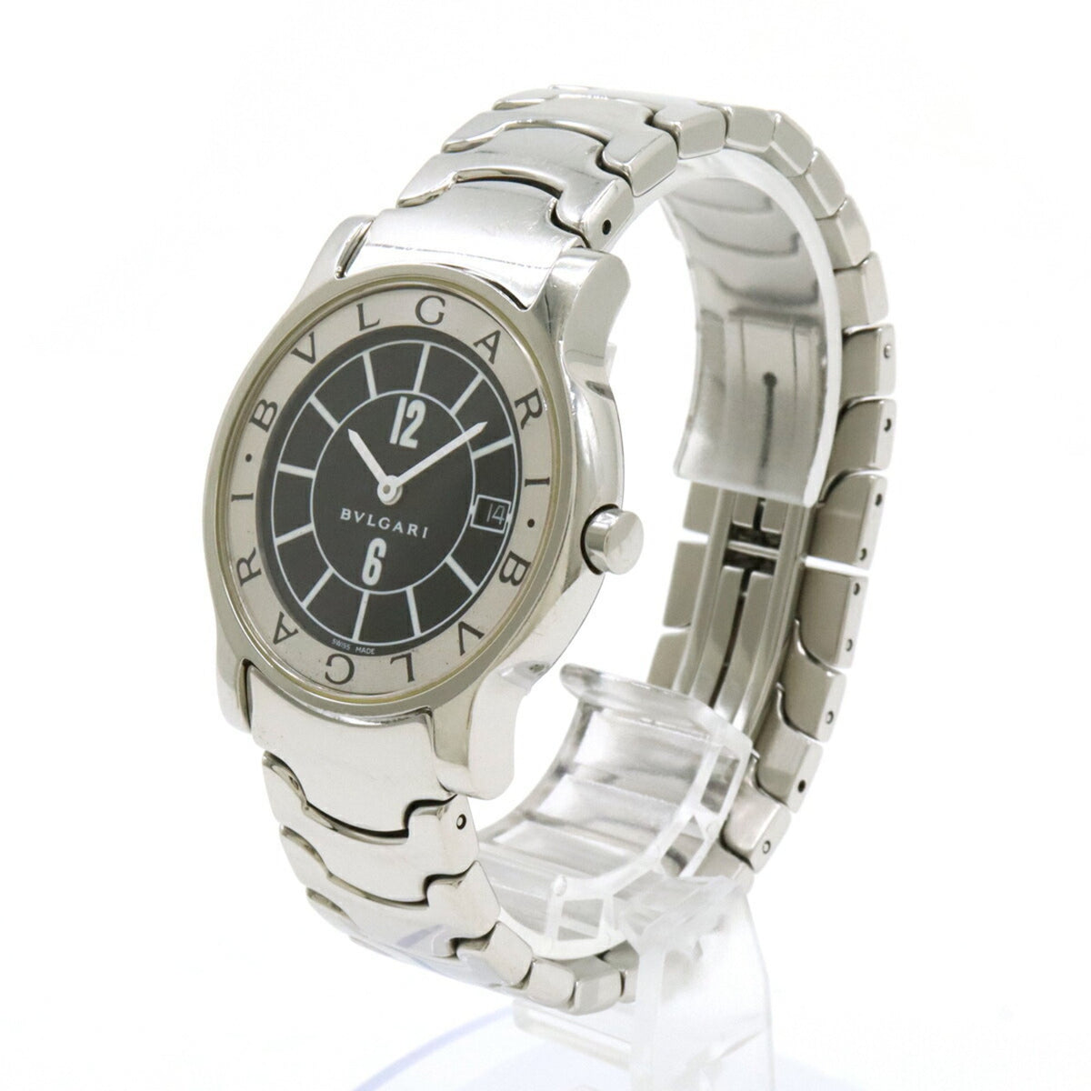 Gebrauchte BVLGARI Solotempo Herren-Quarzuhr mit schwarzem Zifferblatt und Datumsanzeige, Edelstahl, ST35S