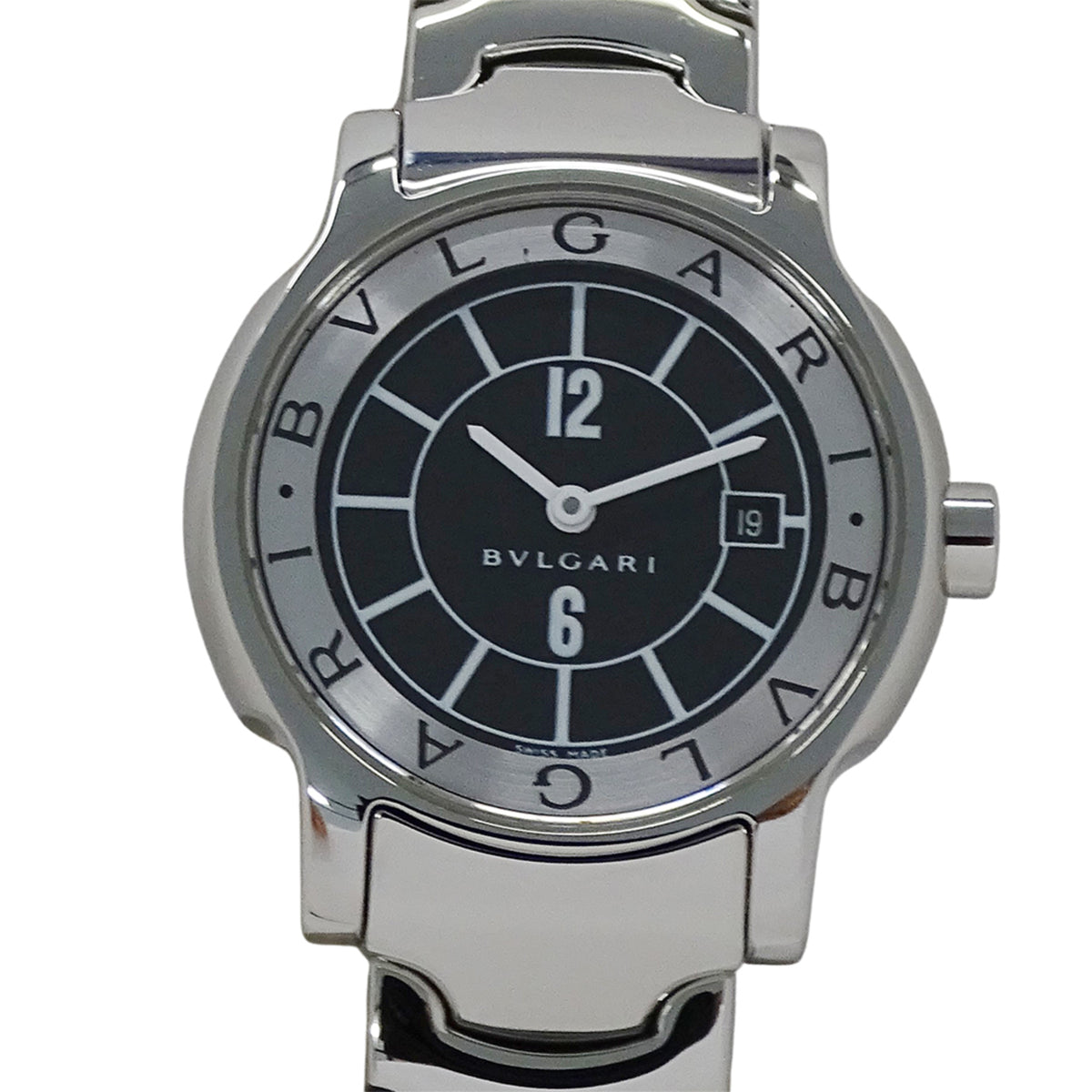 Pre-Owned Bvlgari Solotempo Women's Watch with Date, Quartz Movement, Stainless Steel, ST29S, Silver/Black, Polished