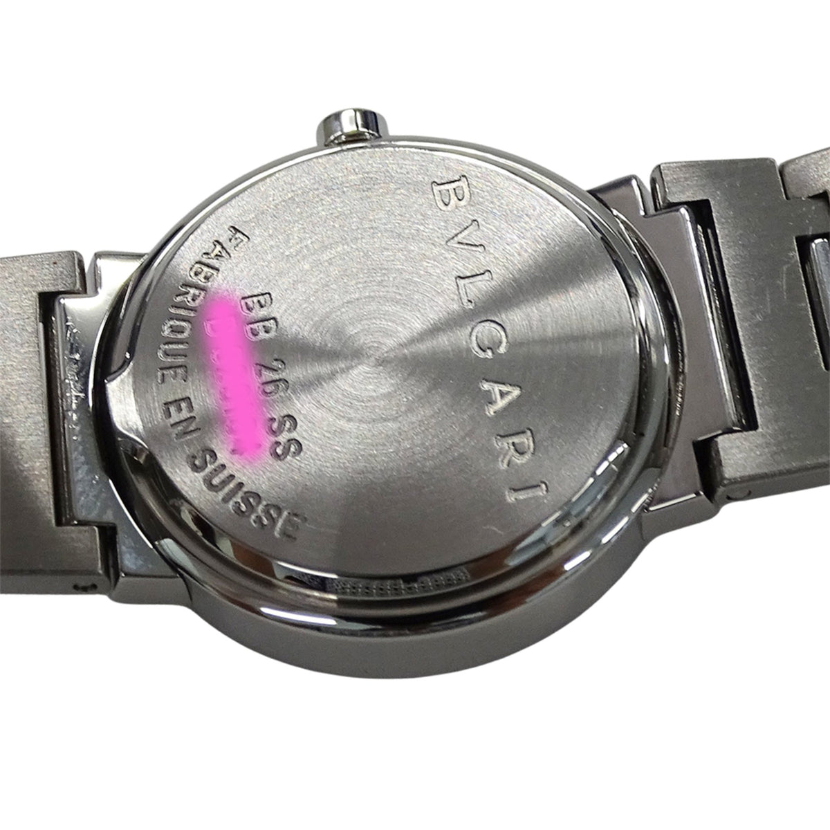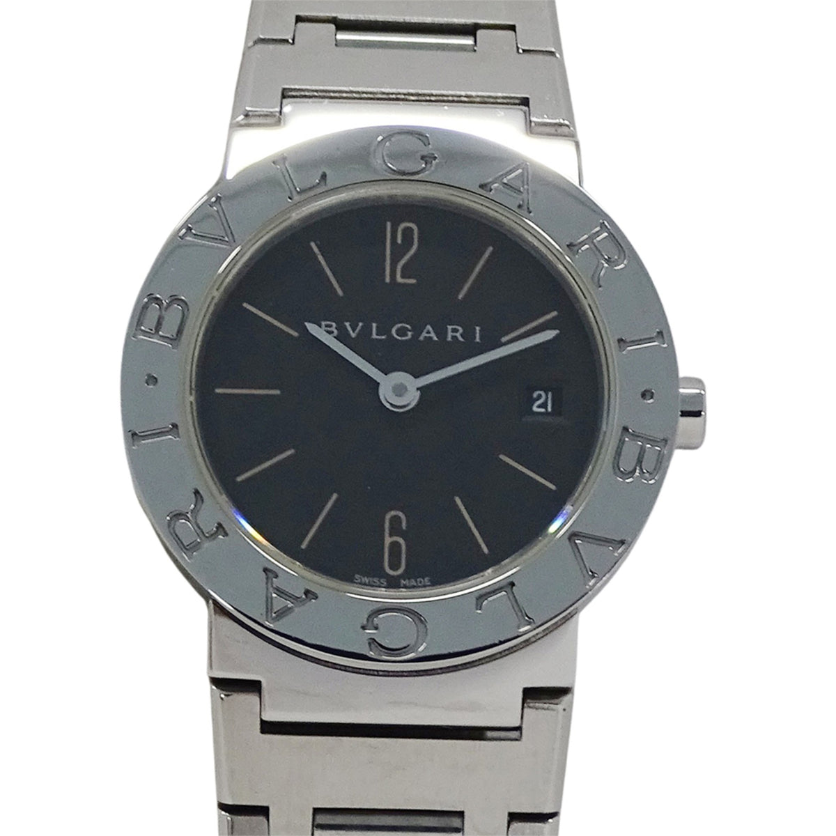 Pre-Owned BVLGARI Women's Watch, Date Quartz QZ Stainless Steel SS BB26SS Silver Black Polished