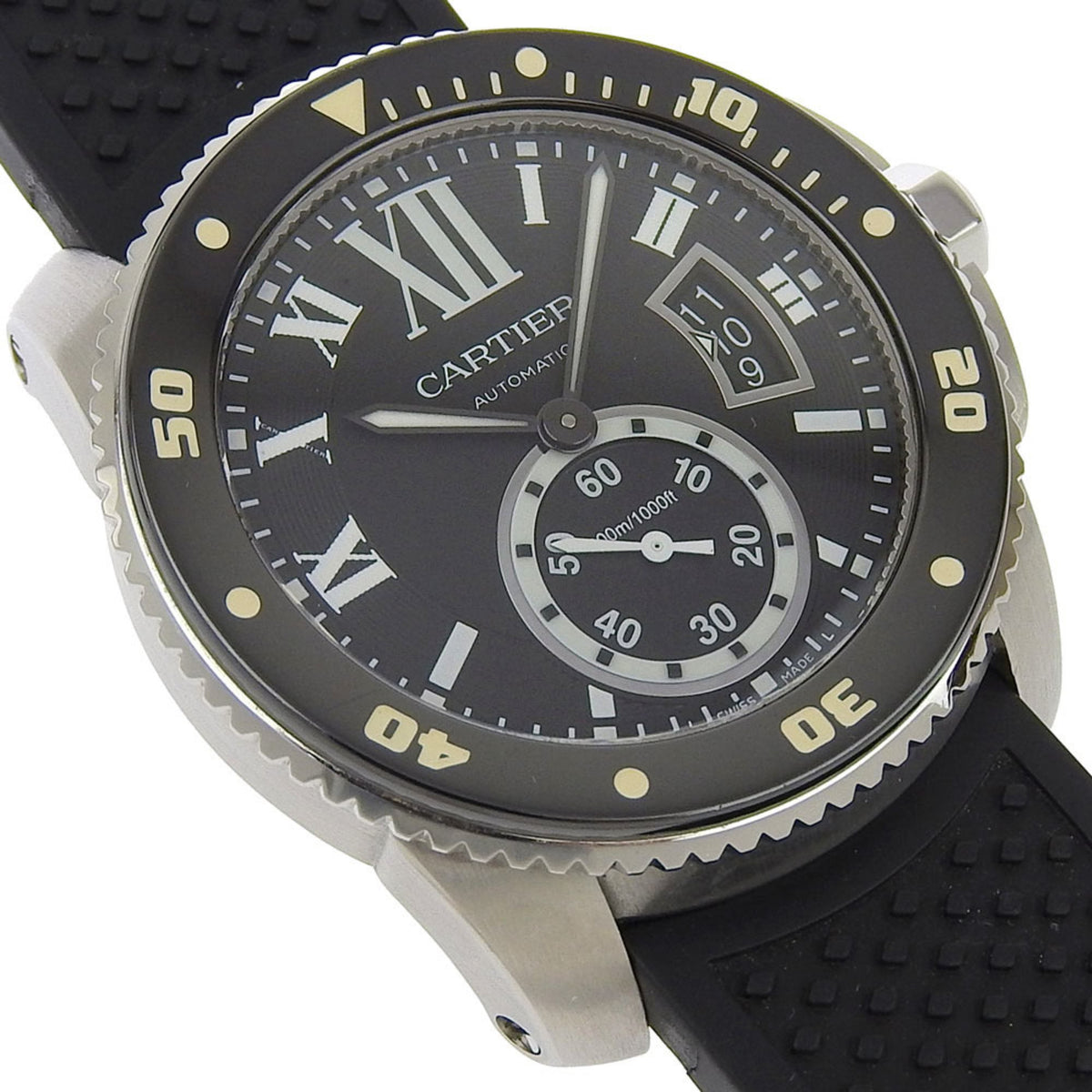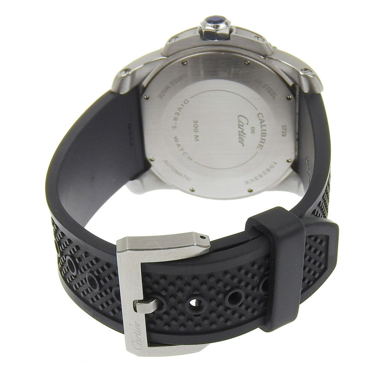 Gebrauchte CARTIER Calibre Diver Armbanduhr W7100056 Edelstahl x Gummi Automatik Schwarzes Zifferblatt Herren