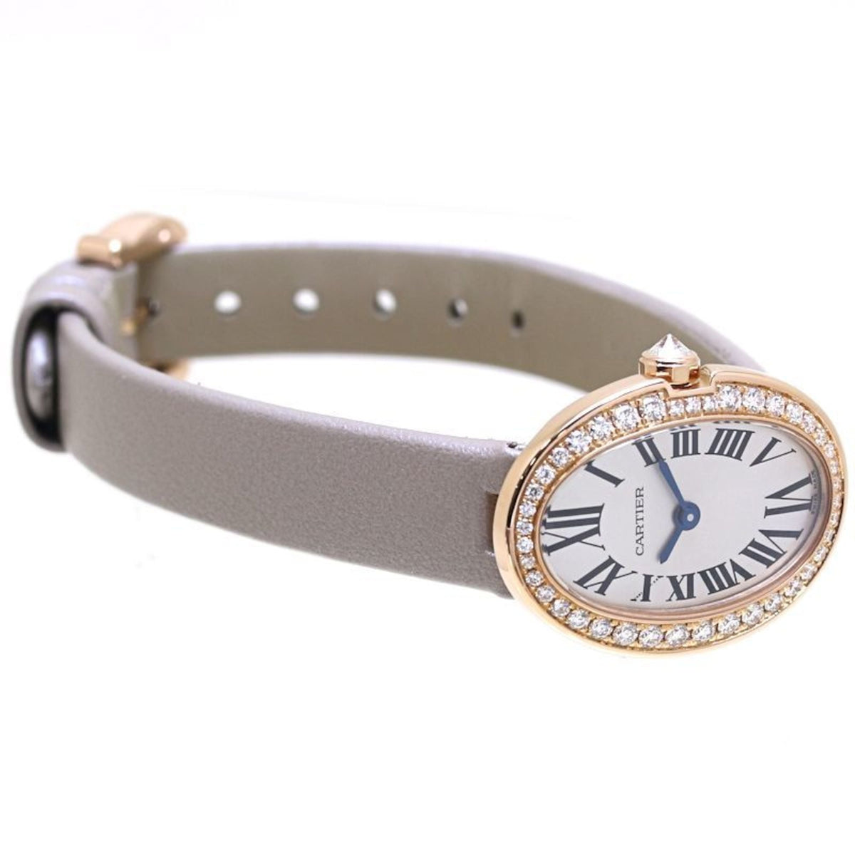 Pre-Owned CARTIER Cartier Mini Baignoire with Diamond Bezel WB520028 Women's Watch in 18K White Gold and Leather Finish 40168