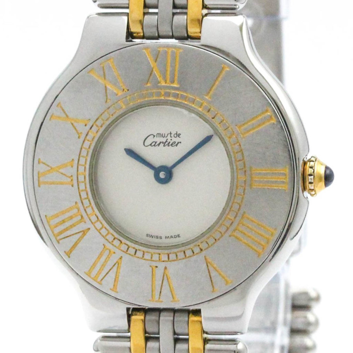 Gebrauchte CARTIER Must 21 vergoldete Stahl-Quarz-Unisex-Uhr W10050F4 BF578775