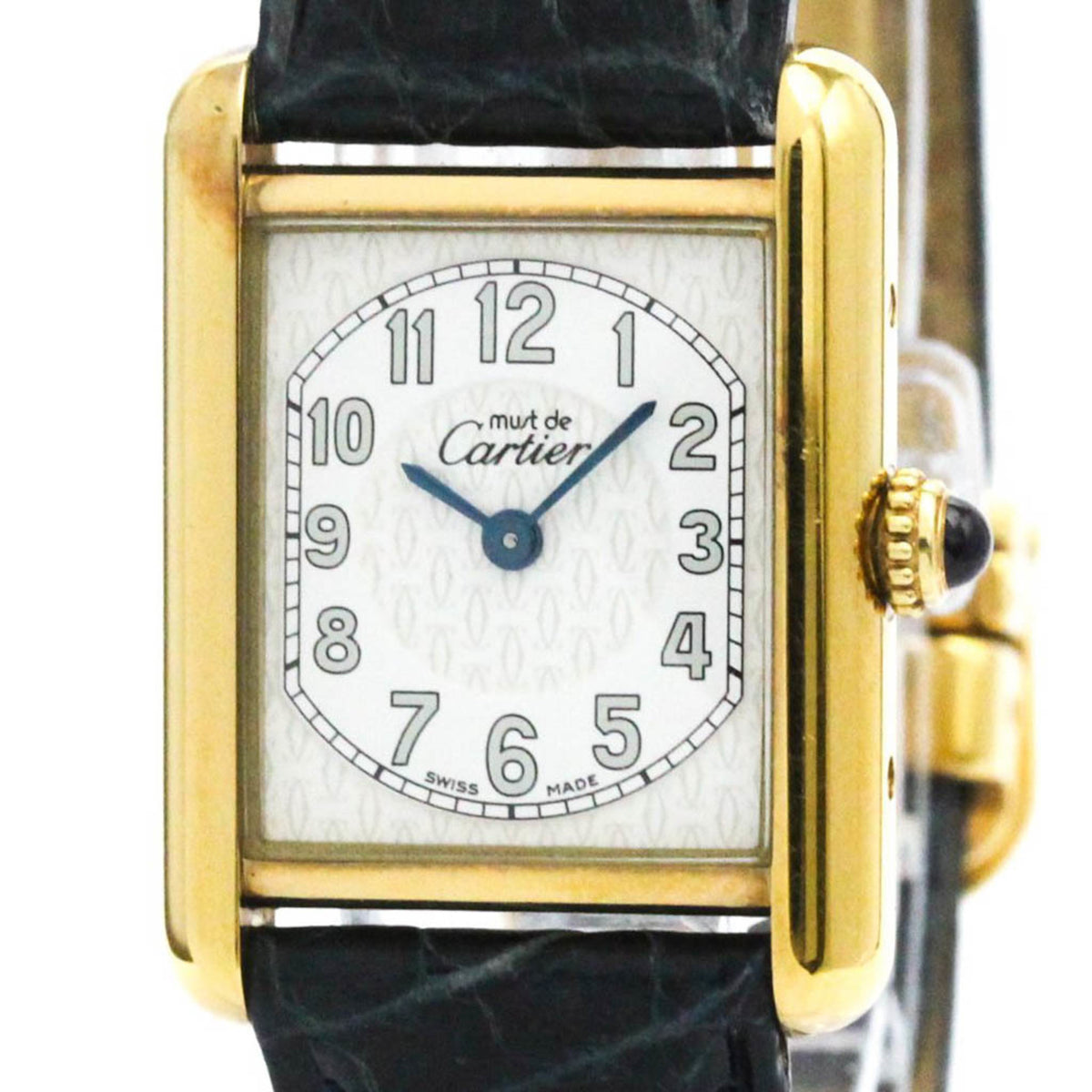 Gebrauchte CARTIER Must Tank Quarz vergoldete Unisex-Kleideruhr W1013854 BF574831