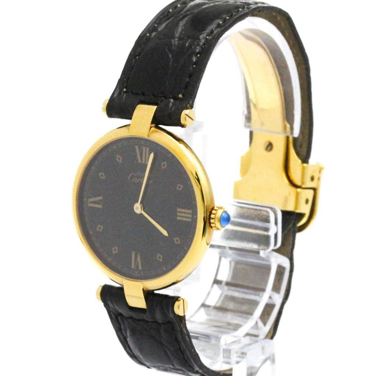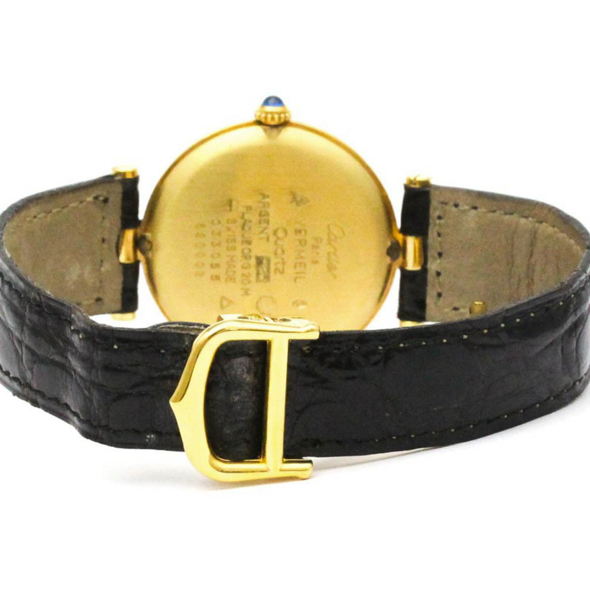 Gebrauchte CARTIER Must Vendome vergoldete Leder-Quarz-Unisex-Uhr 590003