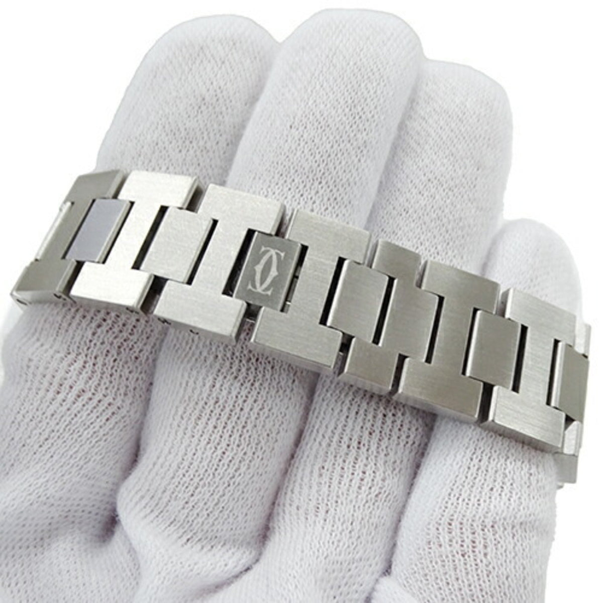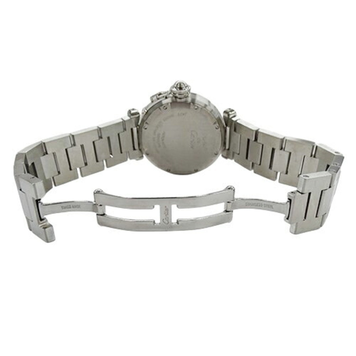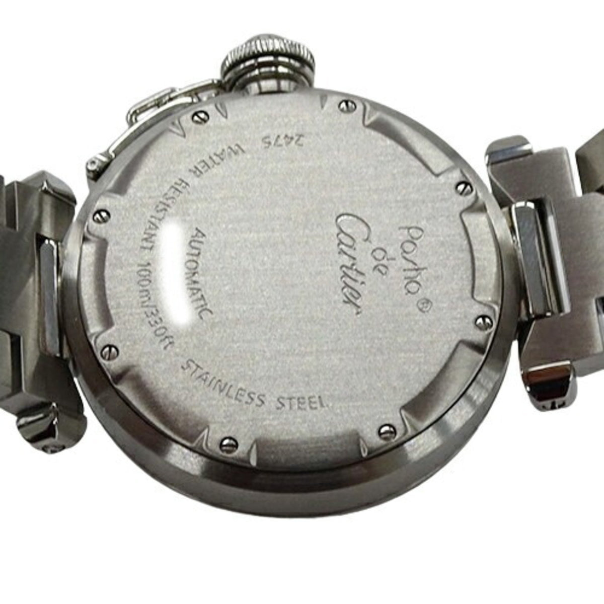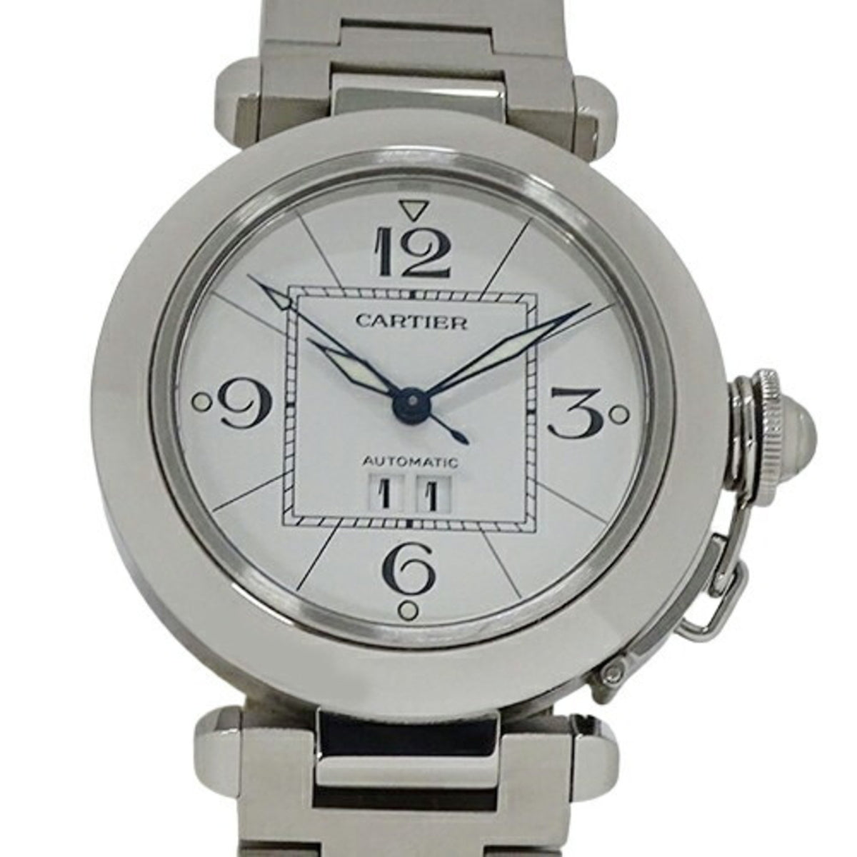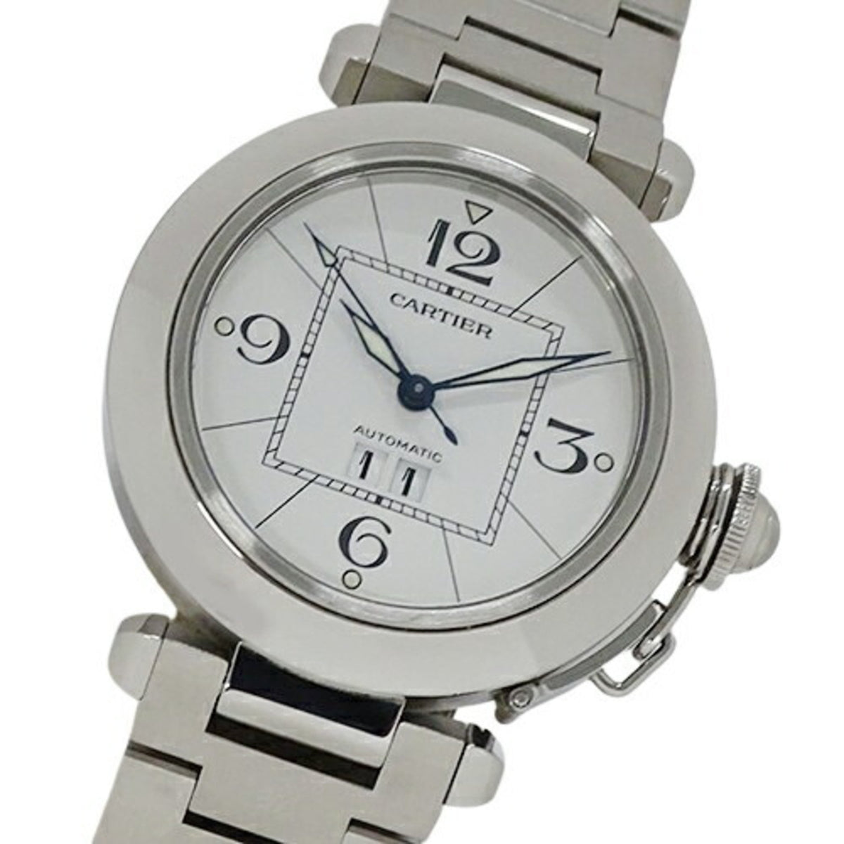Gebrauchte Cartier Pasha C Big Date Automatikuhr für Jungen AT Edelstahl SS W31055M7 Silber Weiß Poliert