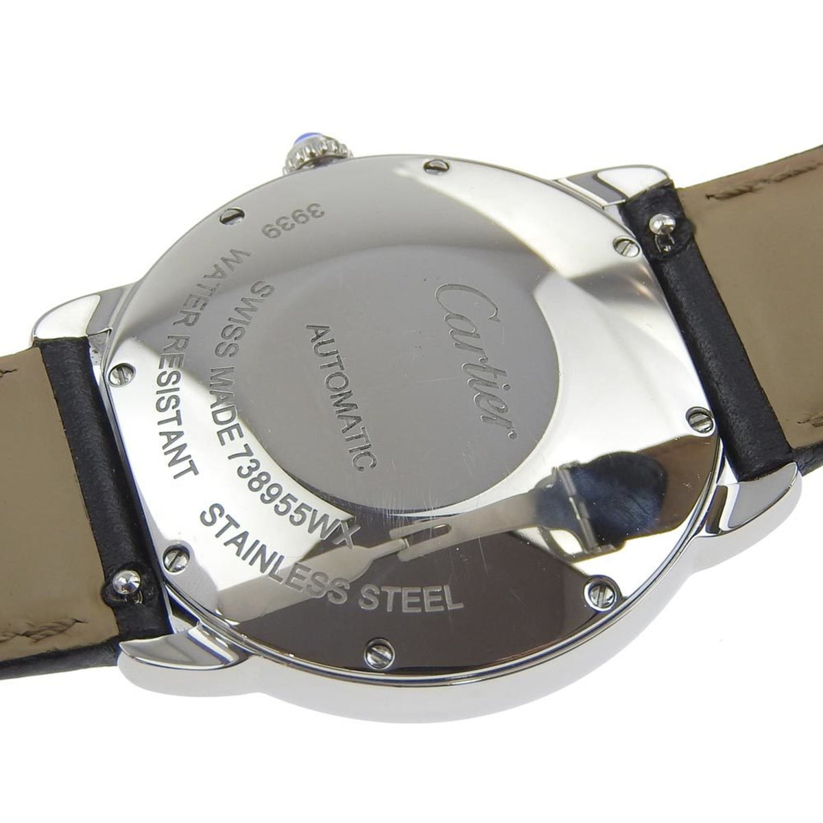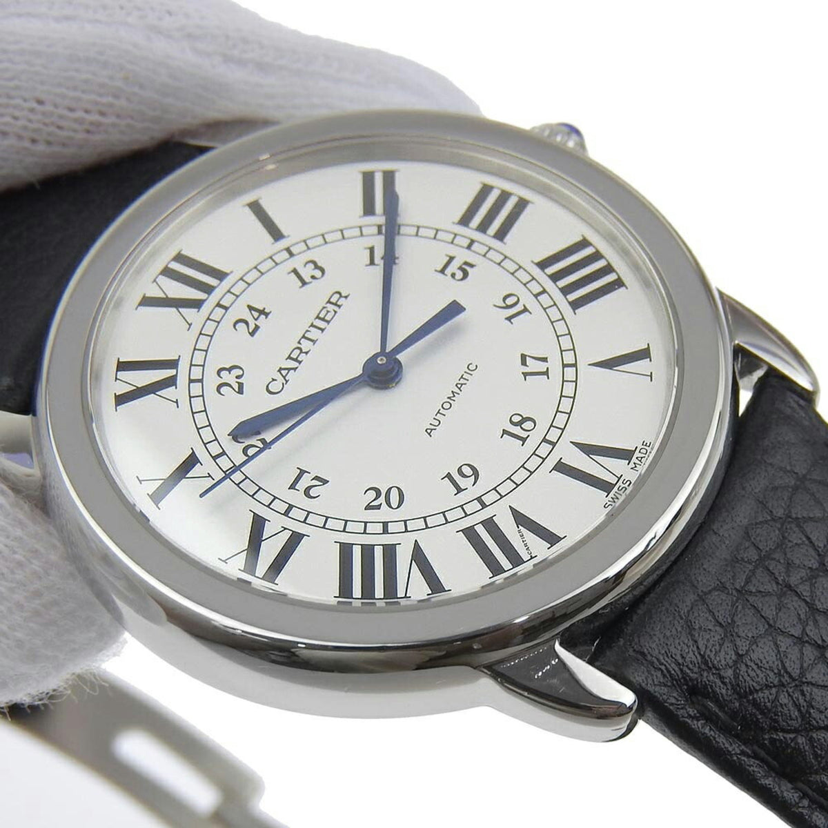 Gebrauchte Cartier Ronde Solo Uhr WSRN0021 Edelstahl x geprägtes Leder Automatik Silbernes Zifferblatt Herren