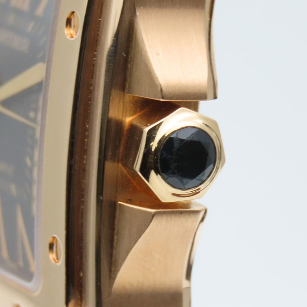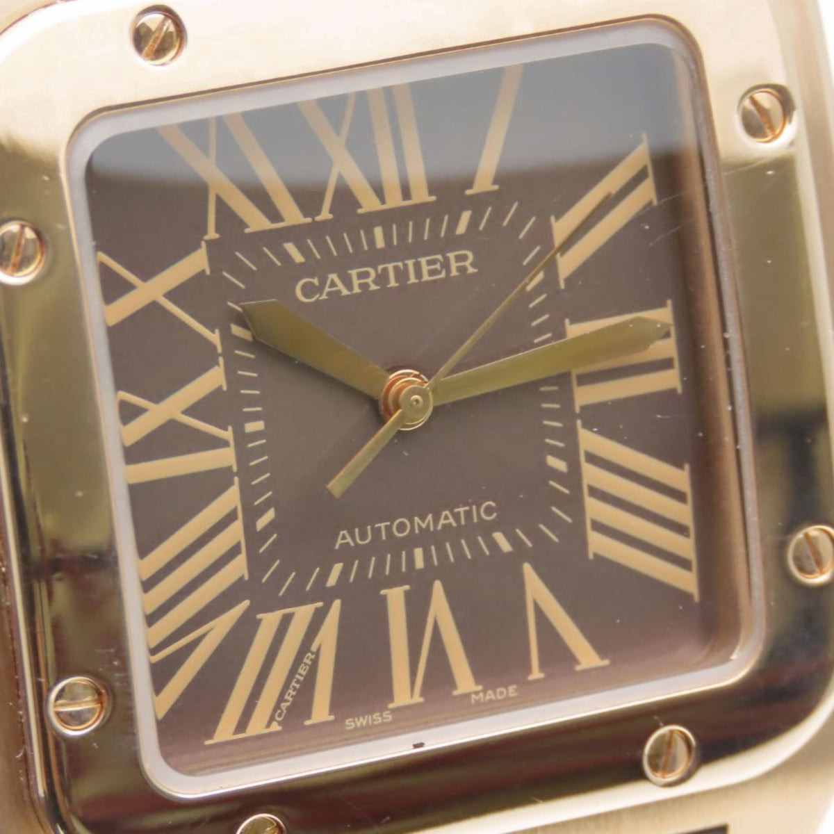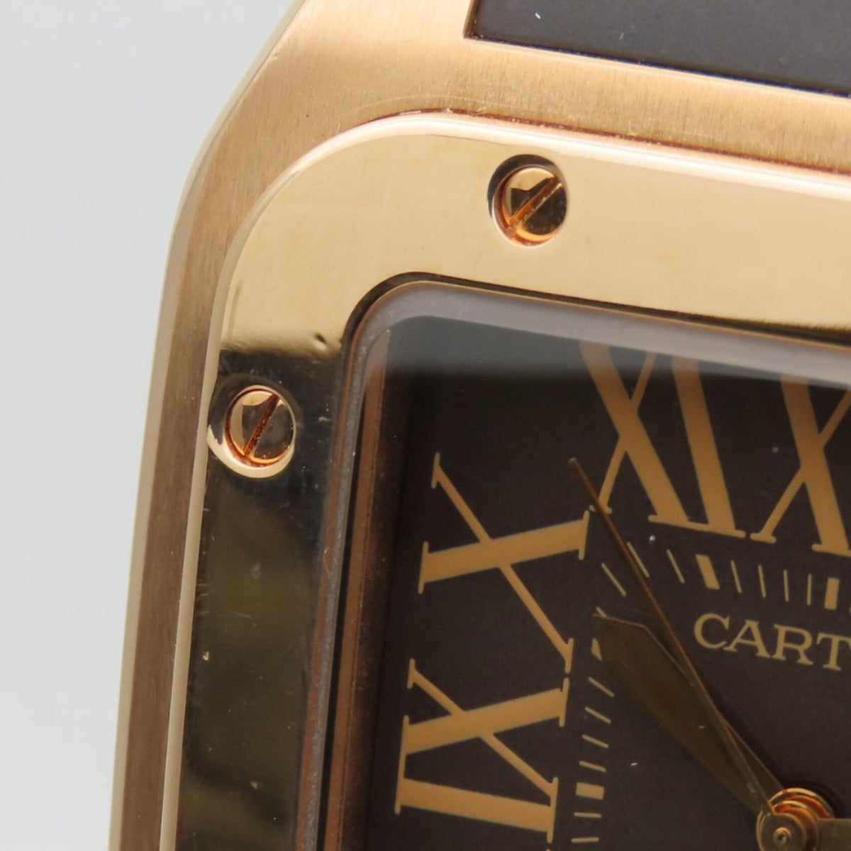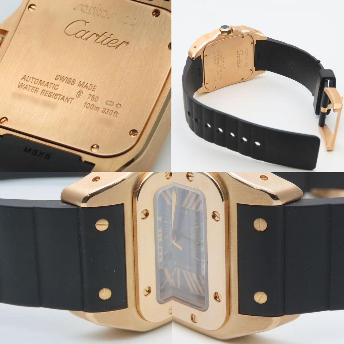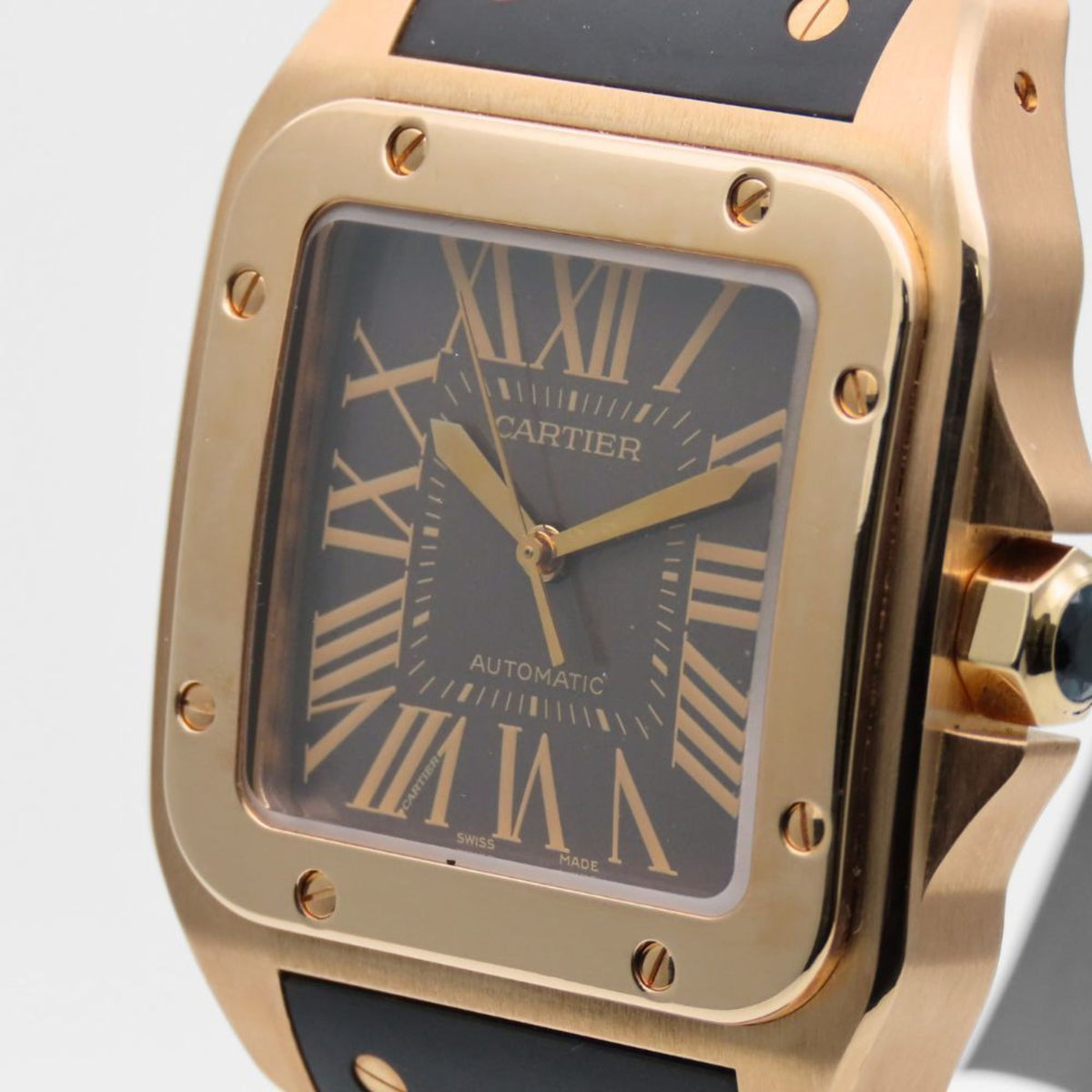 Pre-Owned Cartier Santos 100LM Watch, 18K Gold with Rubber Case, Approx. 167g, Chocolate Black and Pink Dial, Men's