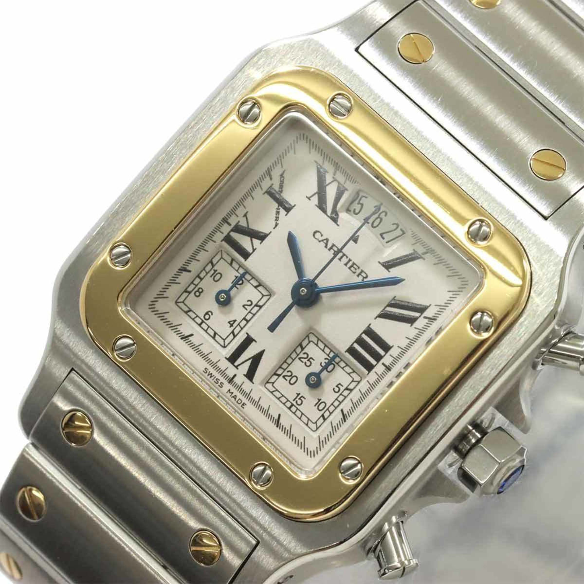 Gebrauchte Cartier Santos Galbe LM Chrono Reflex Ewiger Kalender Combi W20042C4 Herrenuhr Datum Elfenbein K18YG Gelbgold Quarz