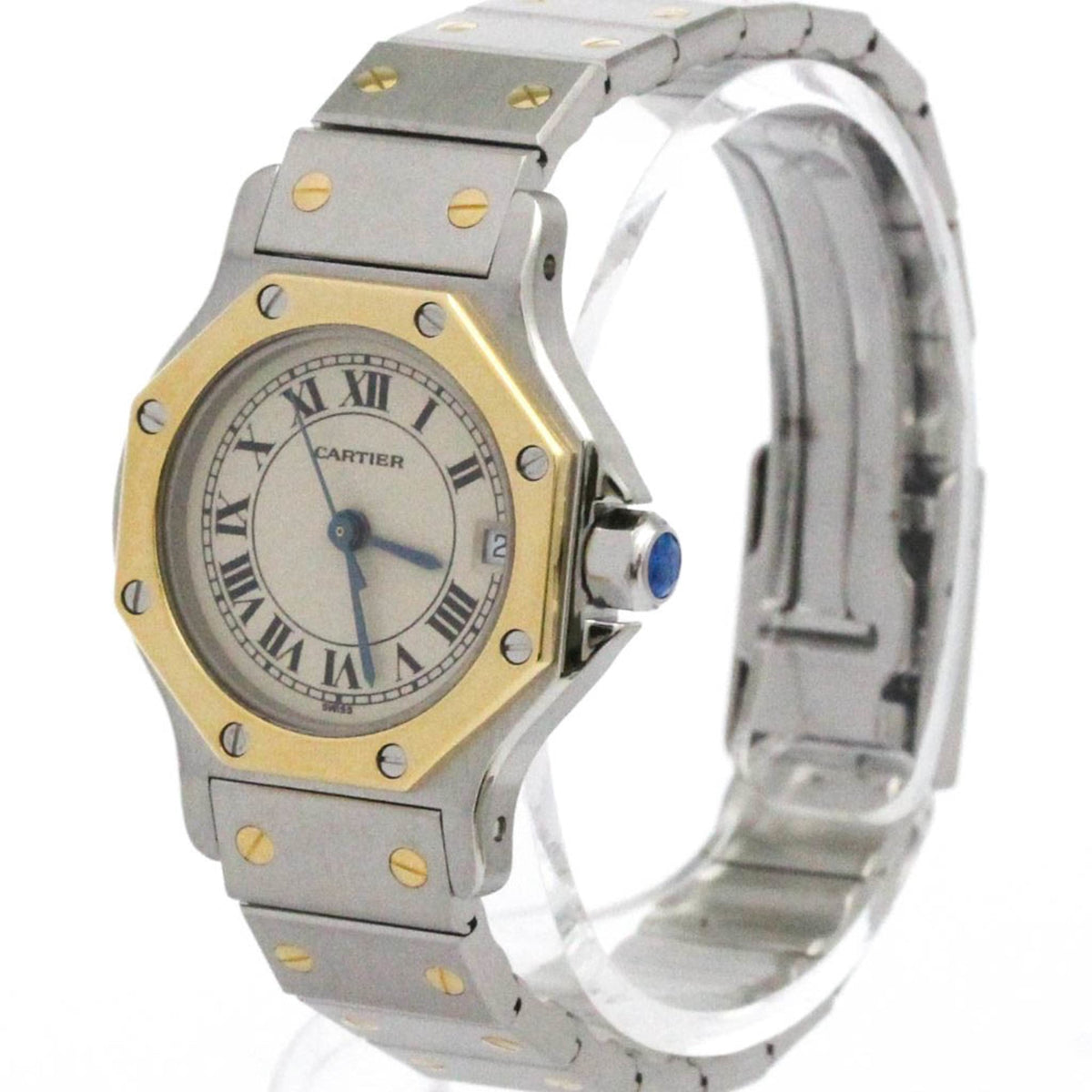 Pre-Owned CARTIER Santos Octagon 18K Gold Steel Quartz Ladies Watch 187903 Polished