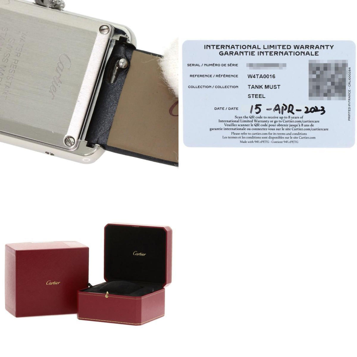 Pre-Owned Cartier Tank Must de W4TA0016 SM Watch in Stainless Steel and Leather for Women