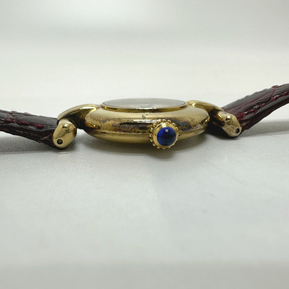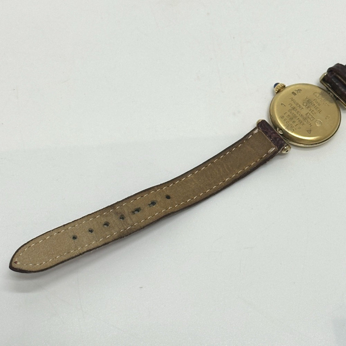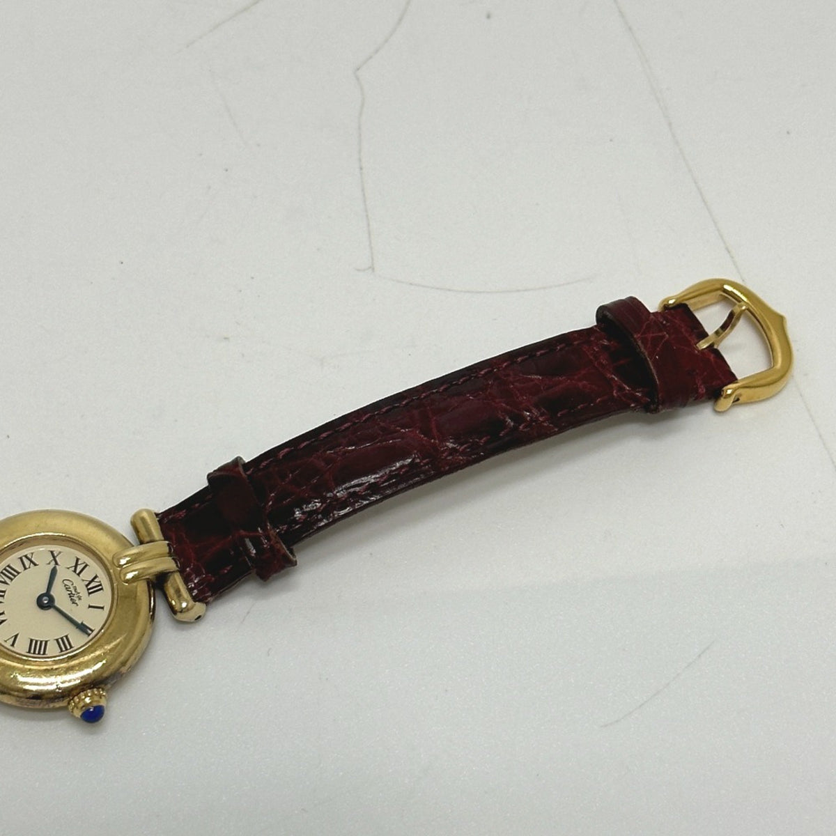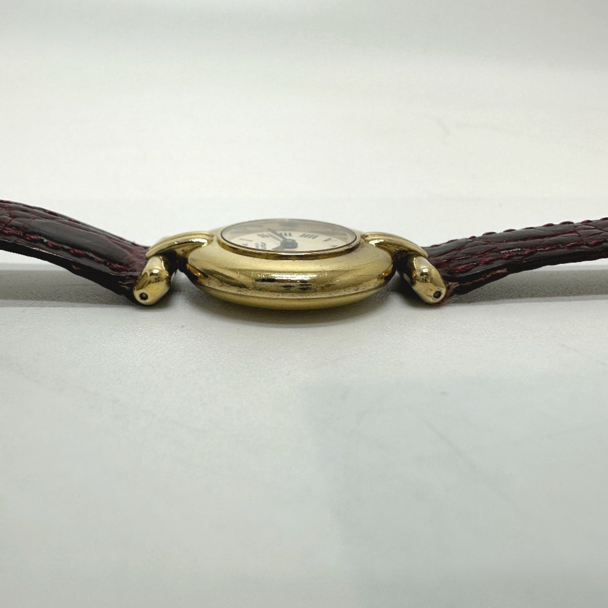 Gebrauchte Cartier Vintage Quarz Armbanduhr Gold Braunes Armband