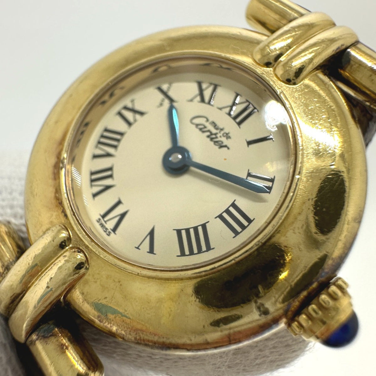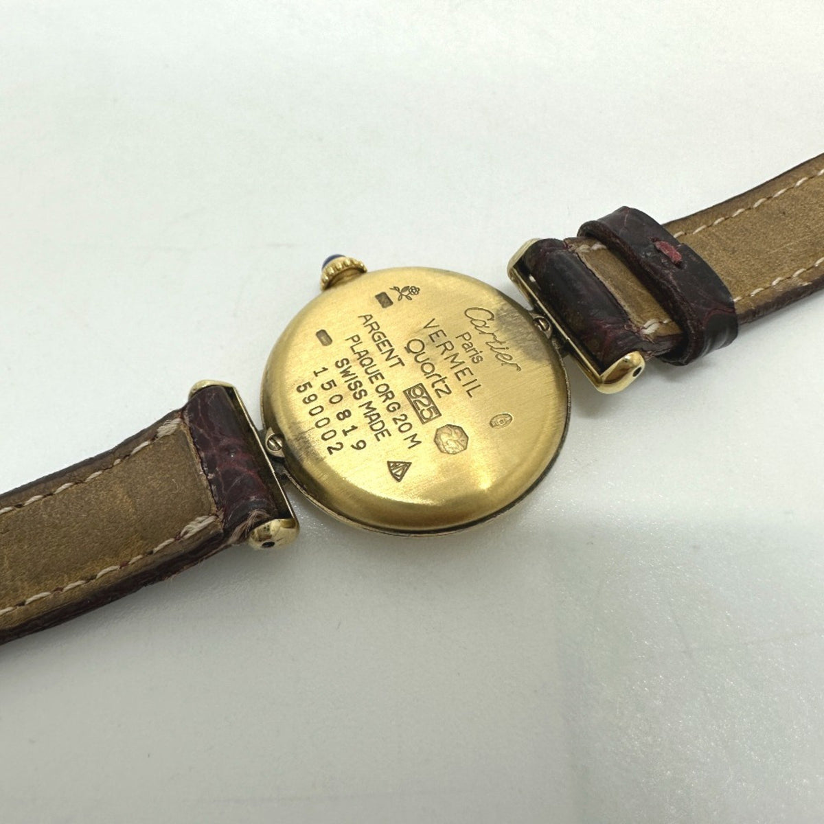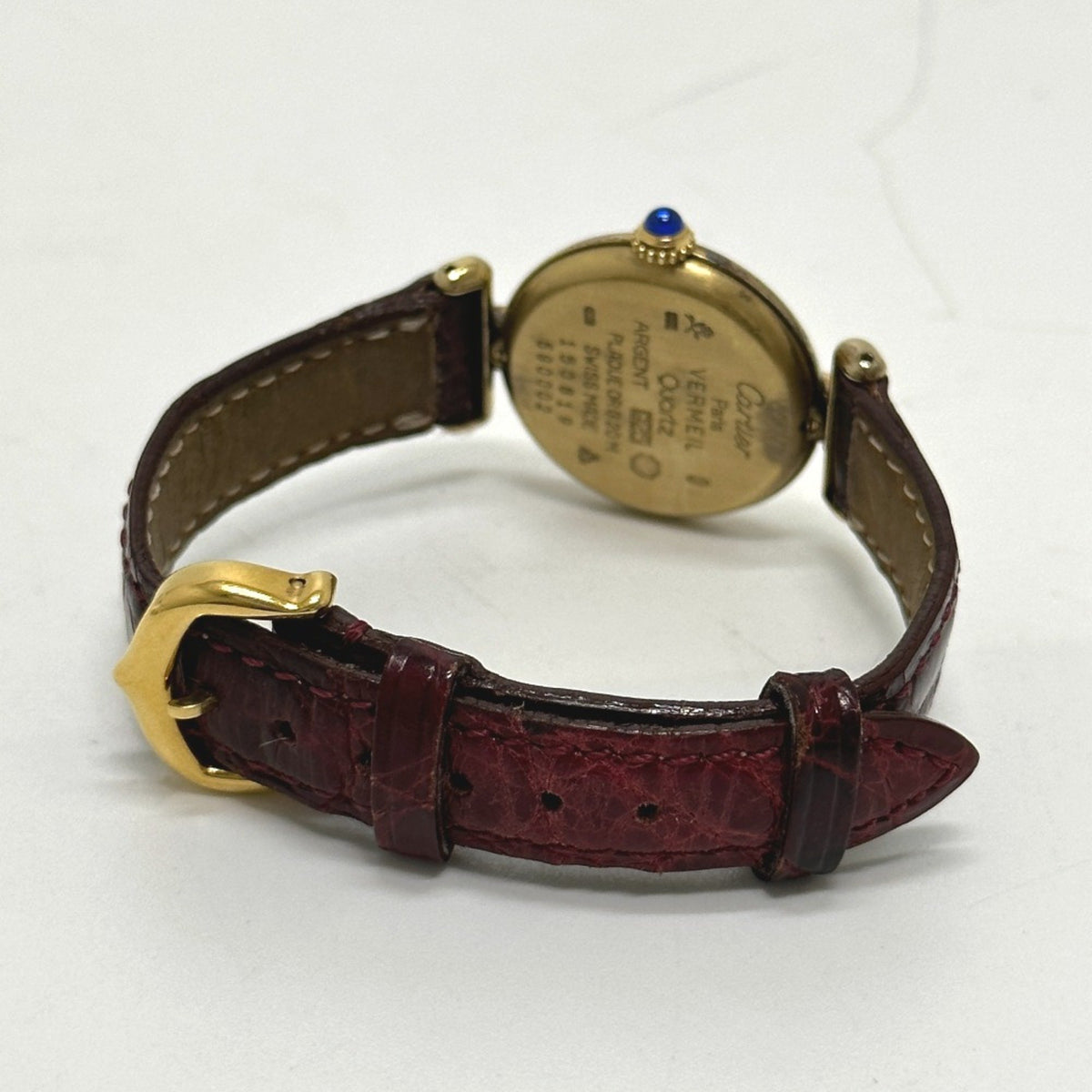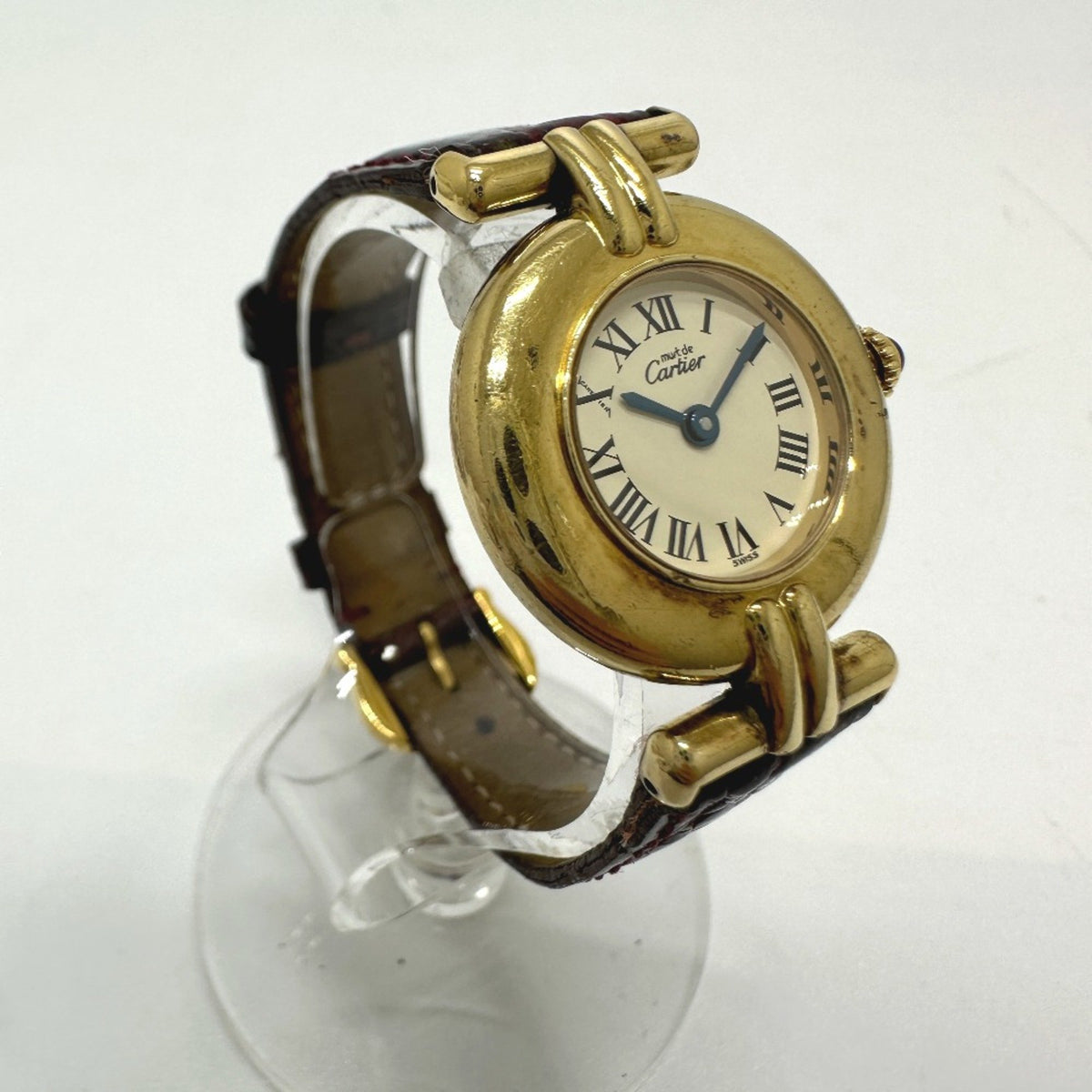 Gebrauchte Cartier Vintage Quarz Armbanduhr Gold Braunes Armband