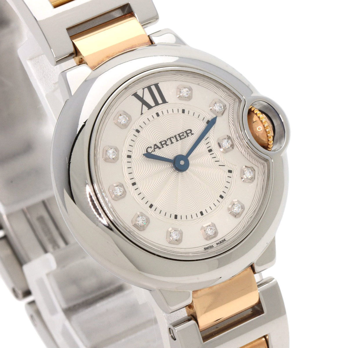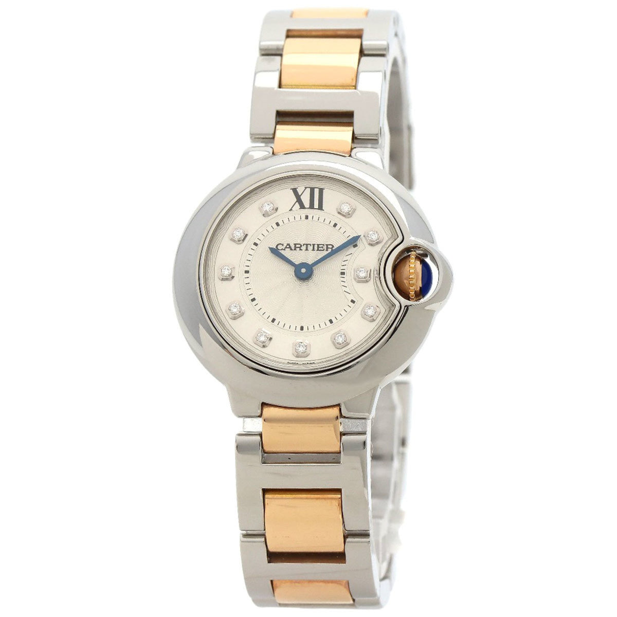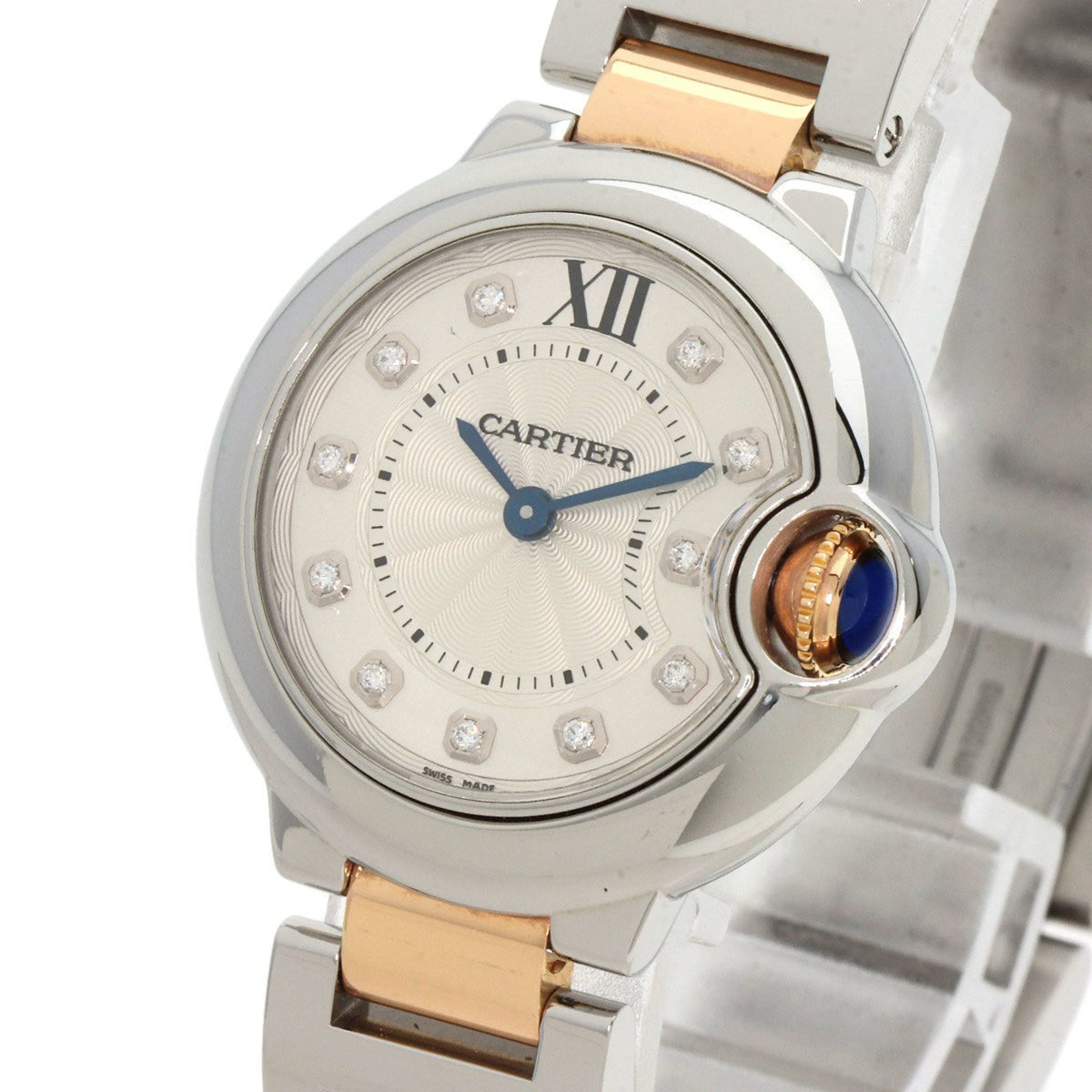 Gebrauchte Cartier WE902030 Ballon Bleu 28 mm 11-teilige Diamantuhr aus Edelstahl (SSxK18PG) für Damen