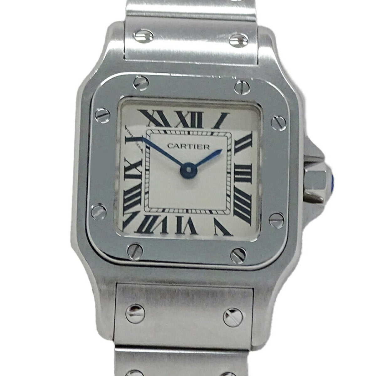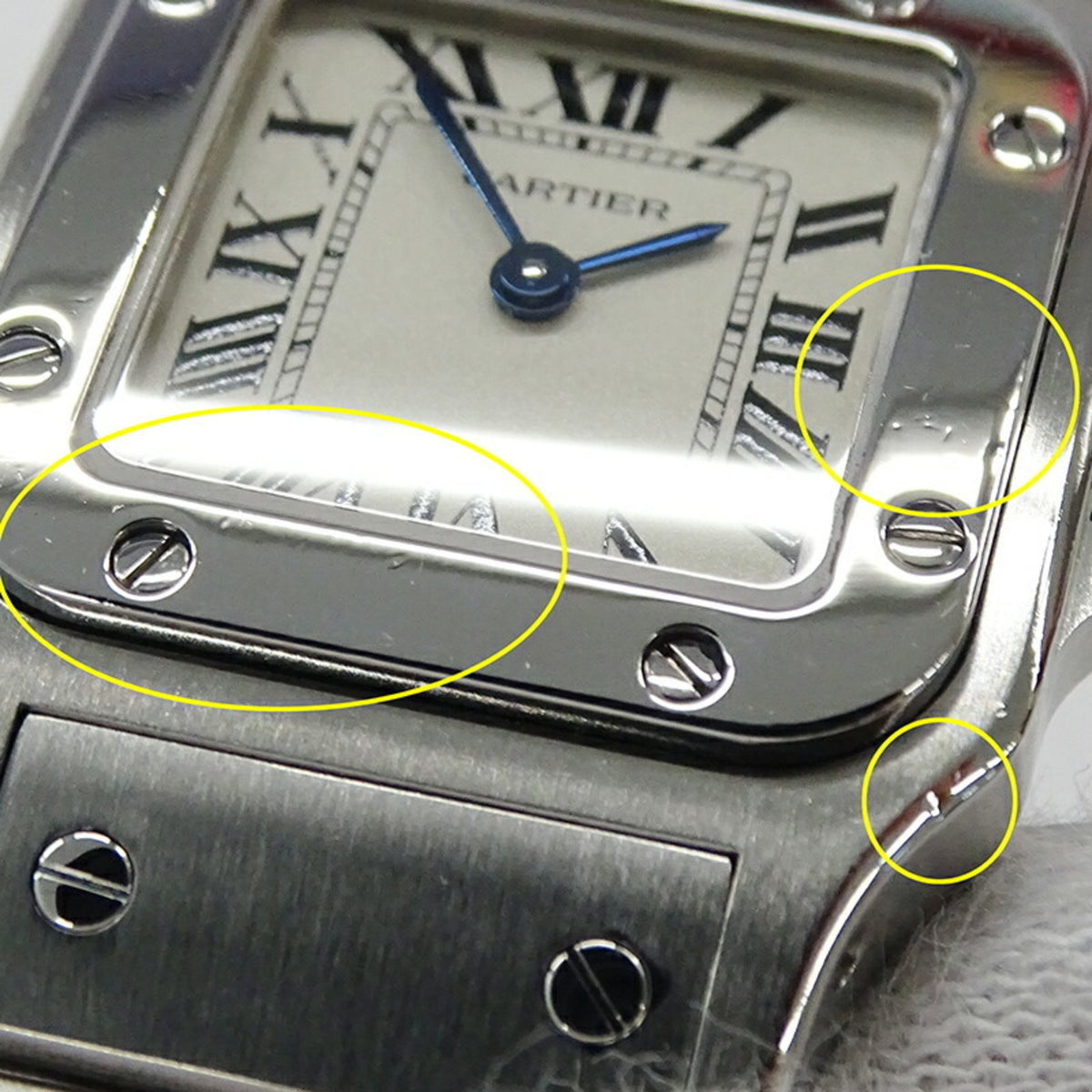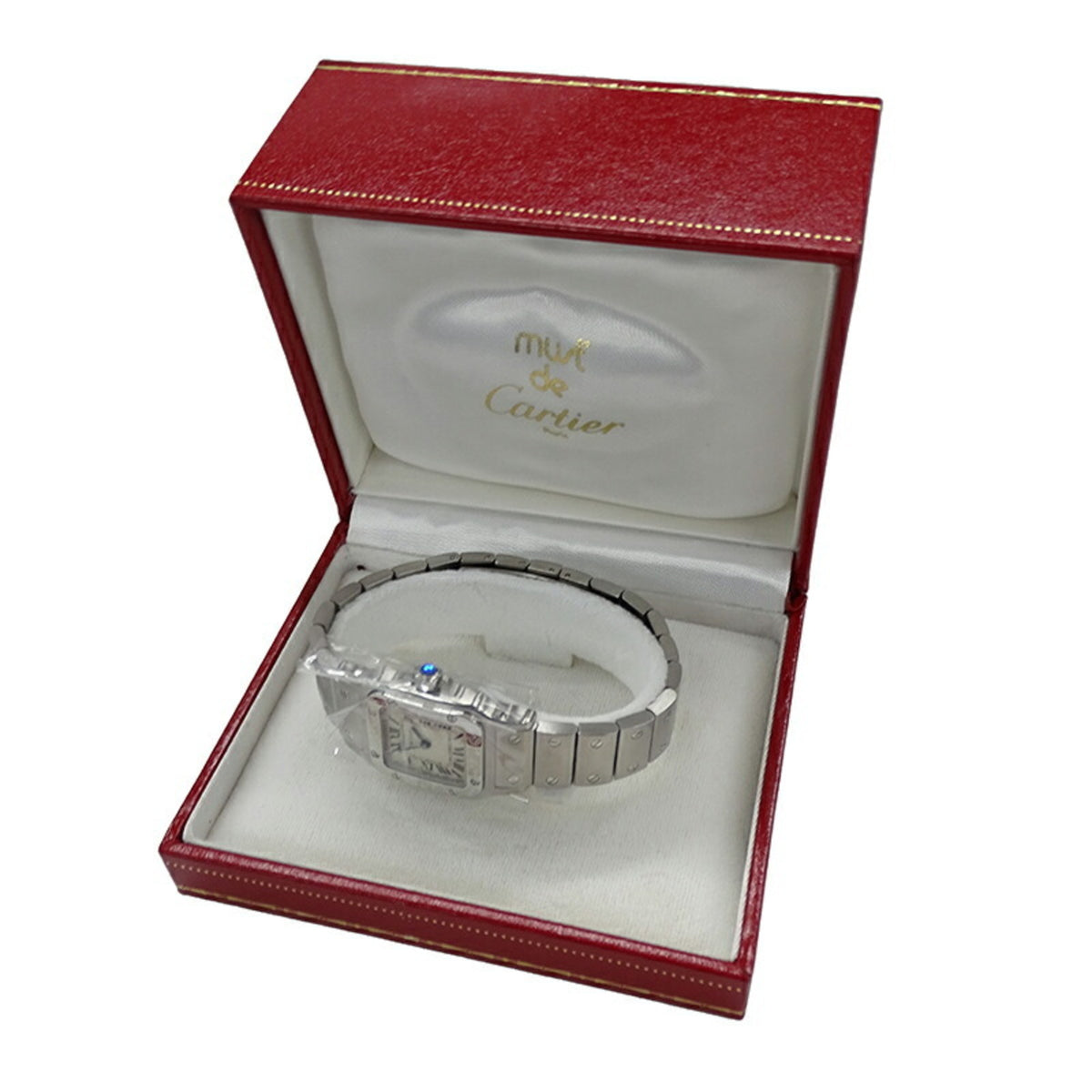 Gebrauchte Cartier Damenuhr Santos Galbe SM Quarz Edelstahl SS W20056D6 Silber Elfenbein poliert