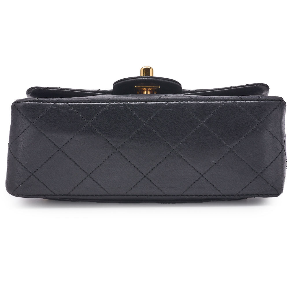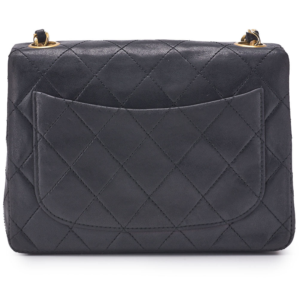 Pre-Owned Chain Shoulder Bag Mini Matelassé Lammleder Schwarz Goldfarbene Hardware Pre-Owned