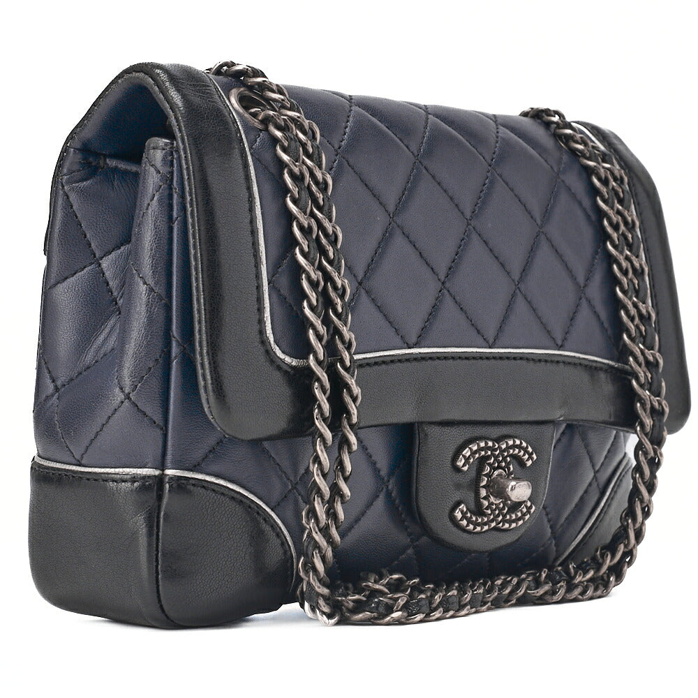 - Premium material: Mini Matelassé lambskin in bi-color Navy and Black, classic CHANEL texture.