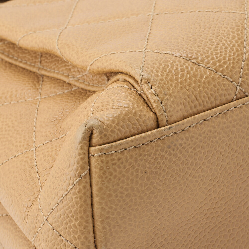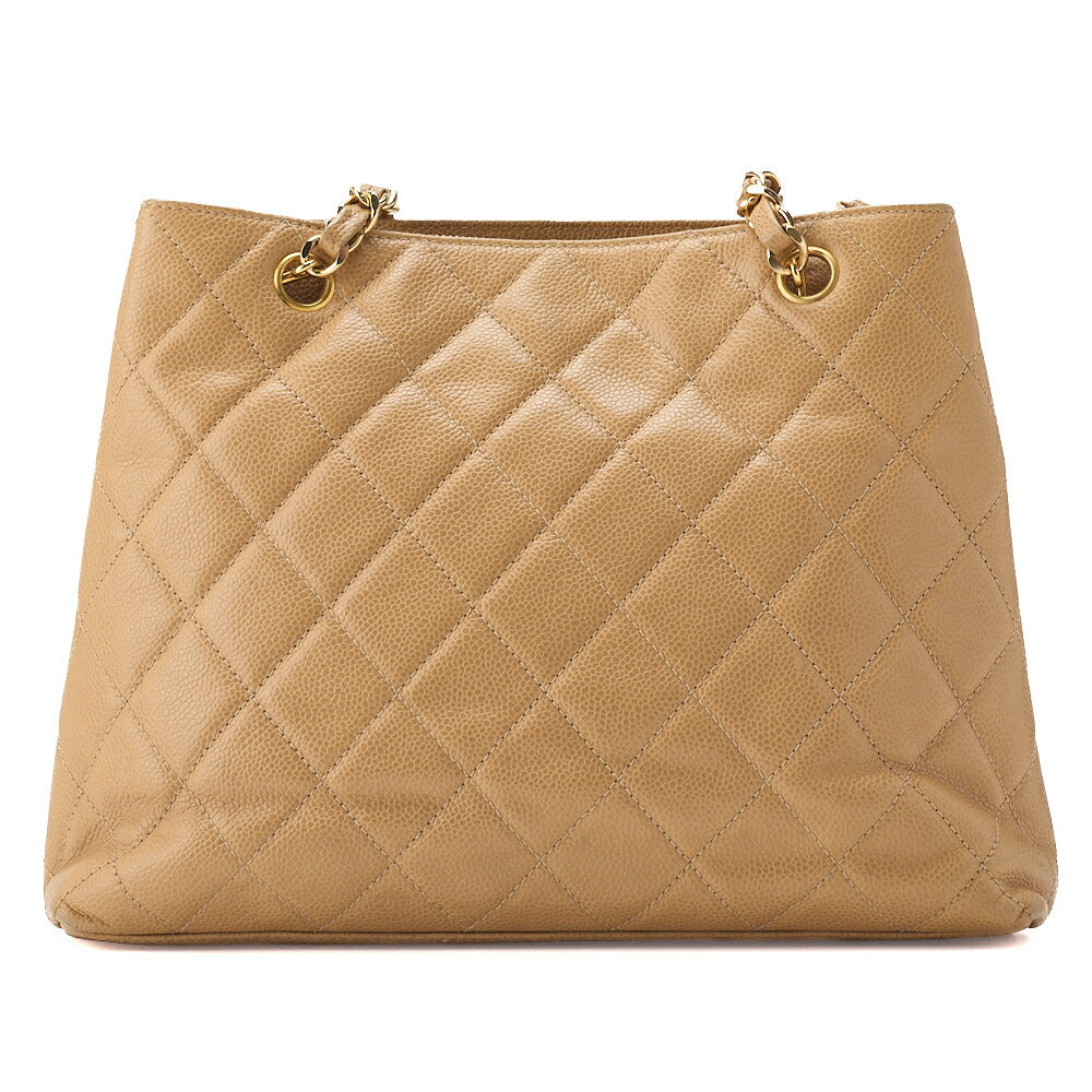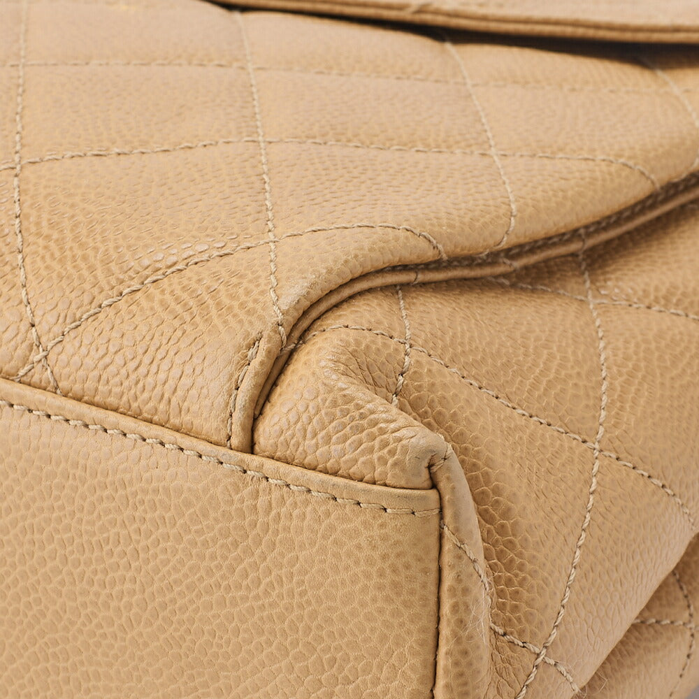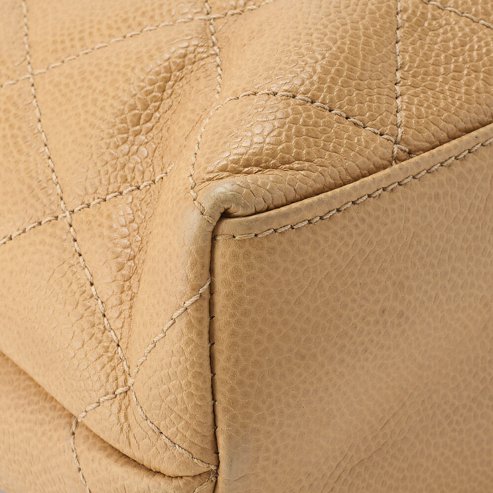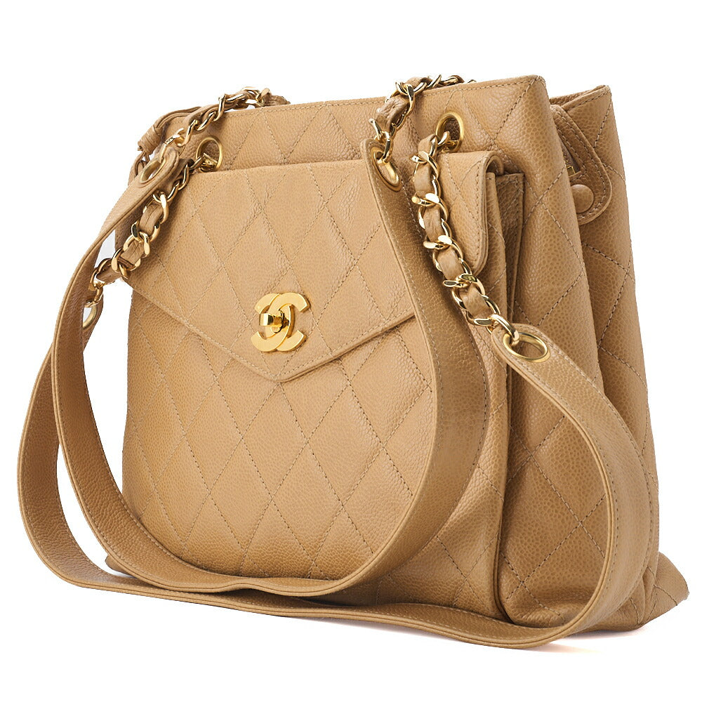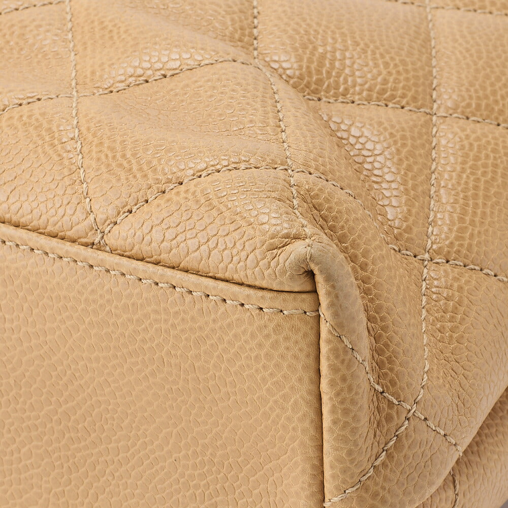 Pre-Owned Kette Schultertasche Außenklappe Kaviar Haut Beige Gold-Ton Hardware Pre-Owned