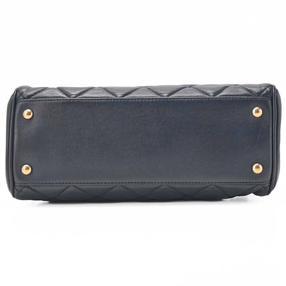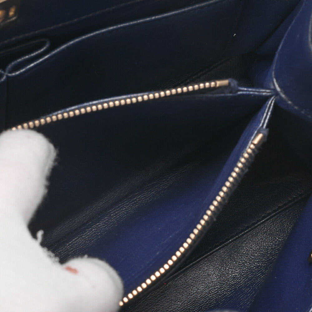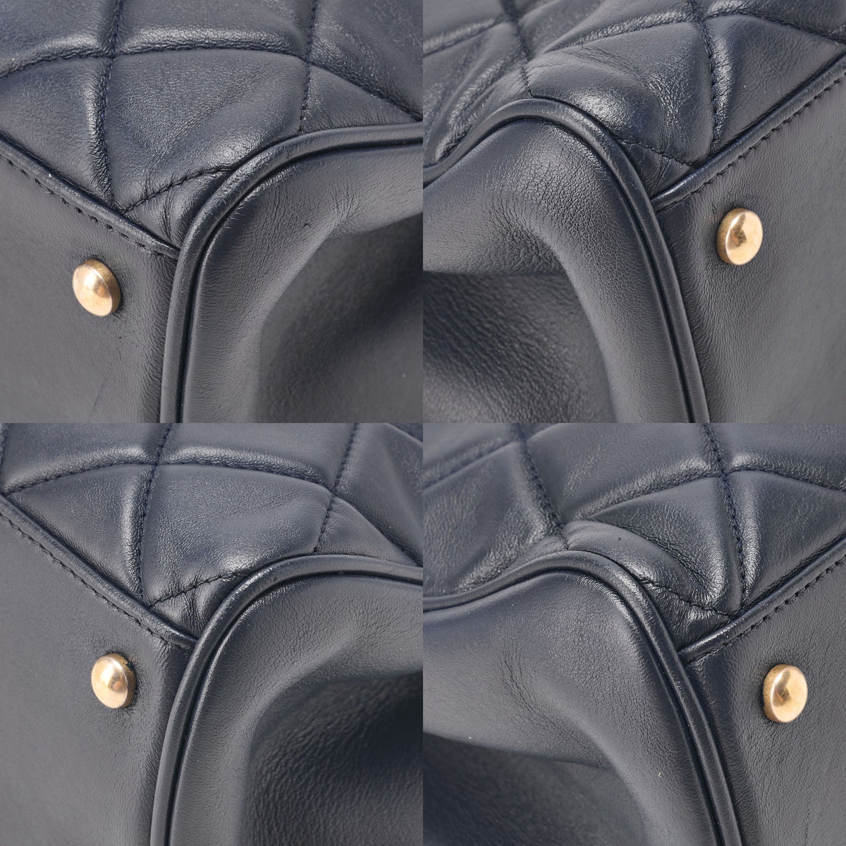 Pre-Owned Chain Shoulder Matelassé Bicolore Calfskin Navy Gold-Tone Hardware, Pre-Owned