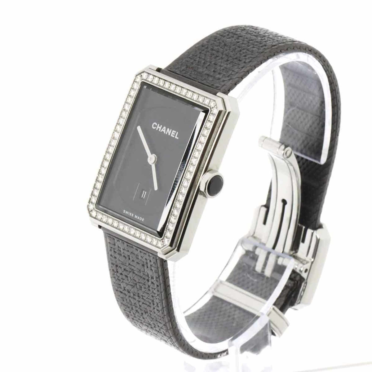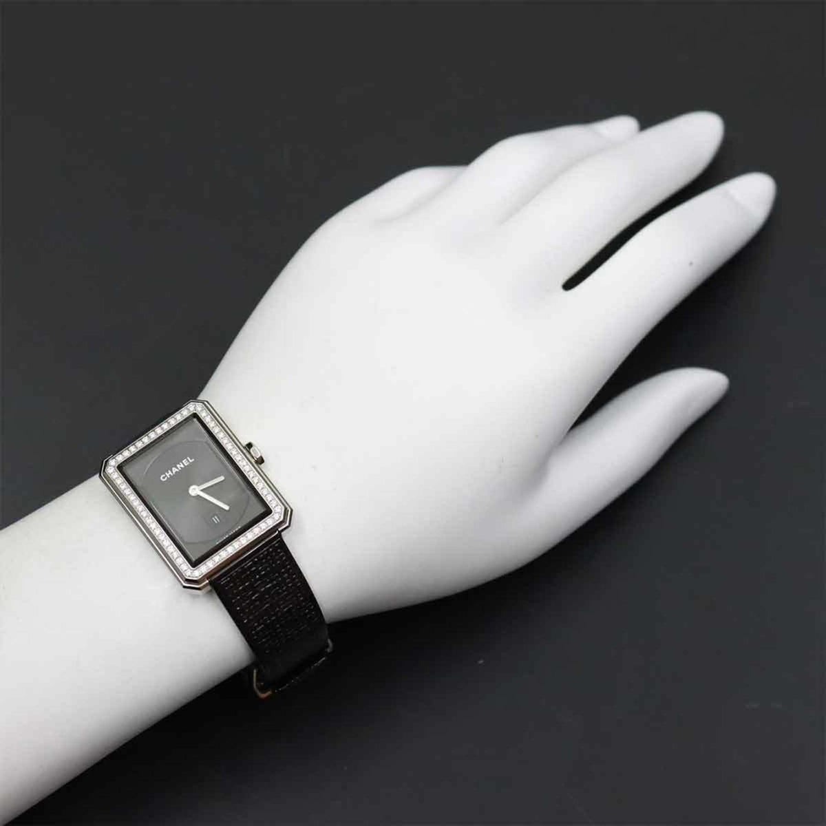 Pre-Owned CHANEL Boyfriend Tweed Diamond Bezel Watch H5318 Boys' with Date Display and Black Quartz Movement