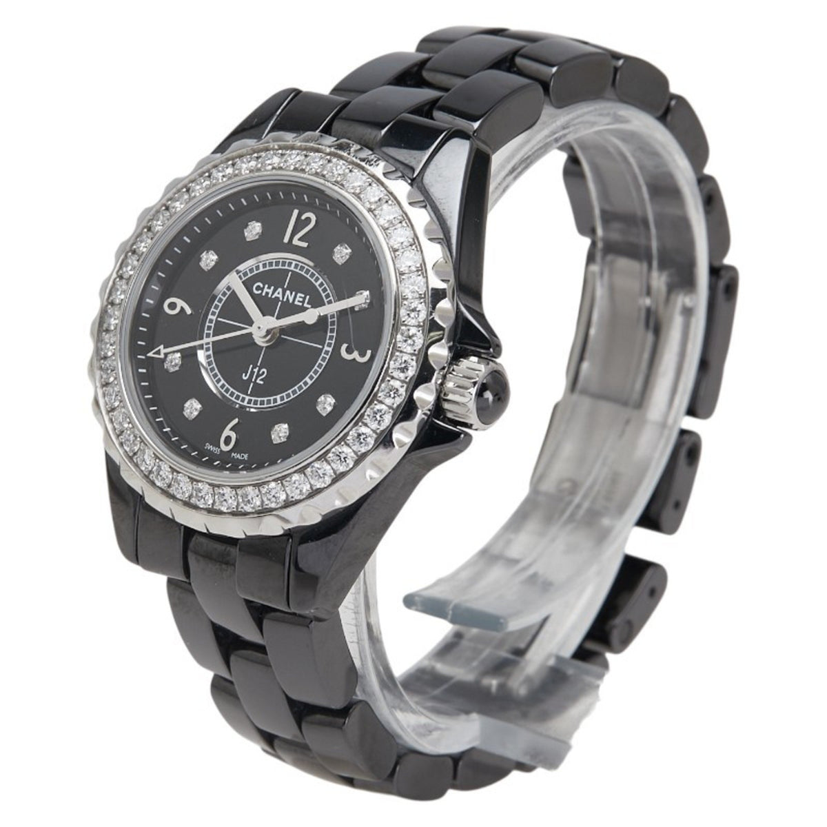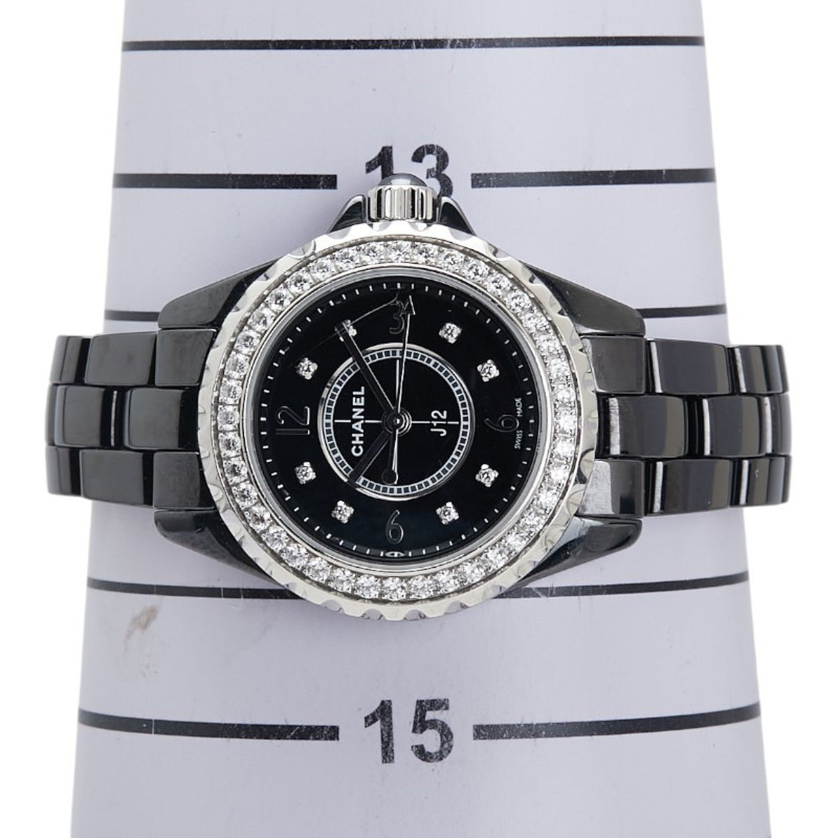Pre-Owned CHANEL J12 Diamond Bezel 8-Piece Watch H2571 Quartz Black Dial Ceramic Women's
