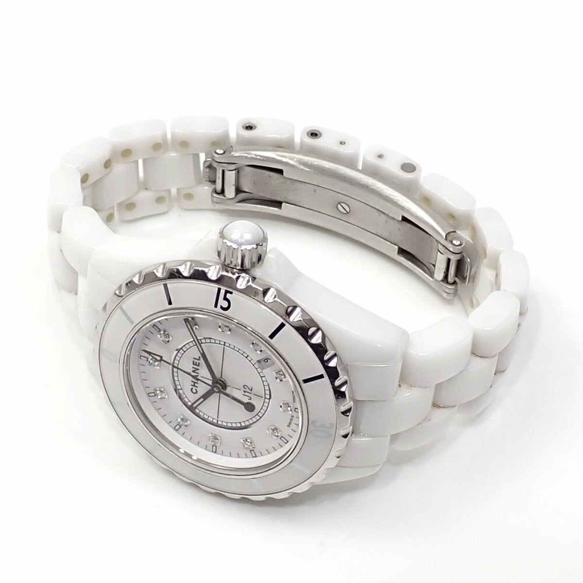 Pre-Owned Chanel J12 Women's Quartz Ceramic Watch H1628 Battery-Operated White with Diamonds