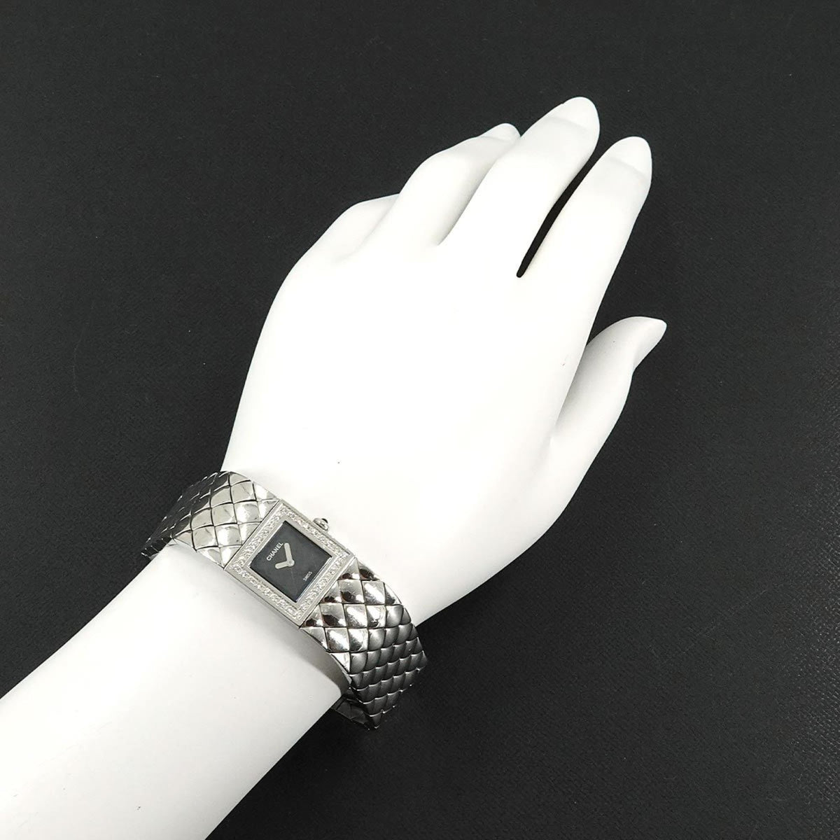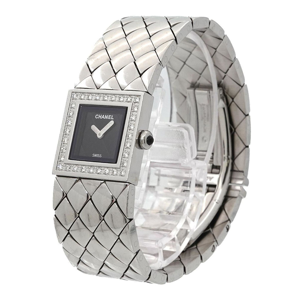 Pre-Owned CHANEL Matelasse H0489 Diamond Bezel Women's Watch, Black Quartz Movement