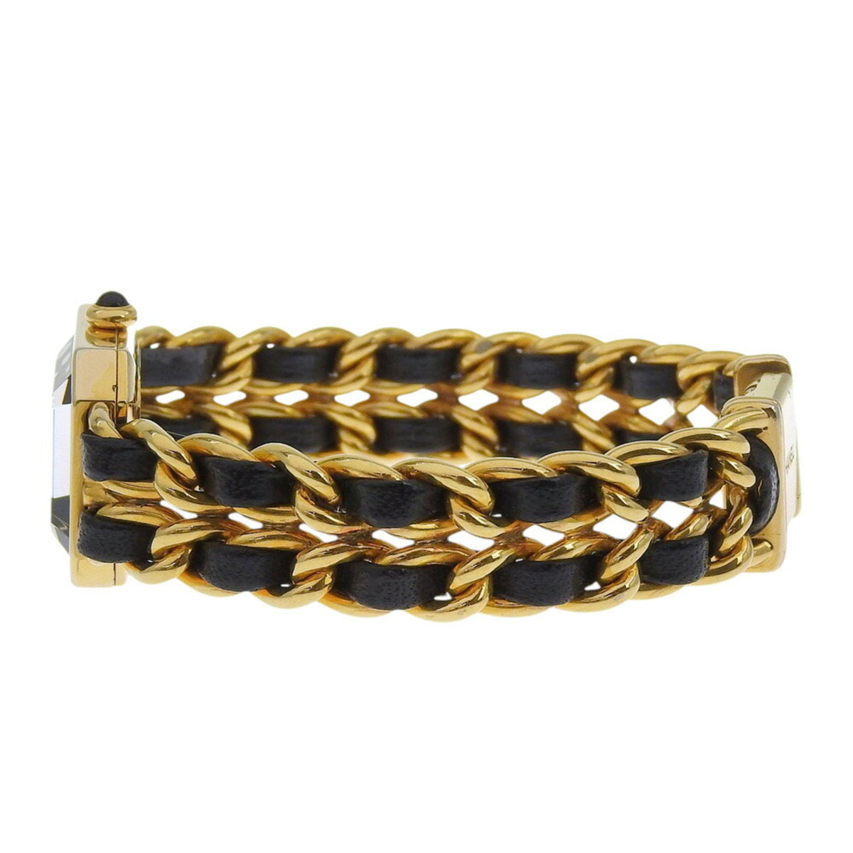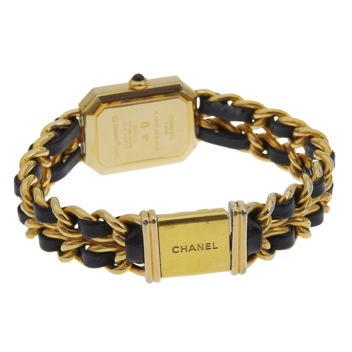 Pre-Owned CHANEL Premiere L Women's Watch, Gold-Plated Leather Strap, Quartz Movement, Analog Display, Black Dial