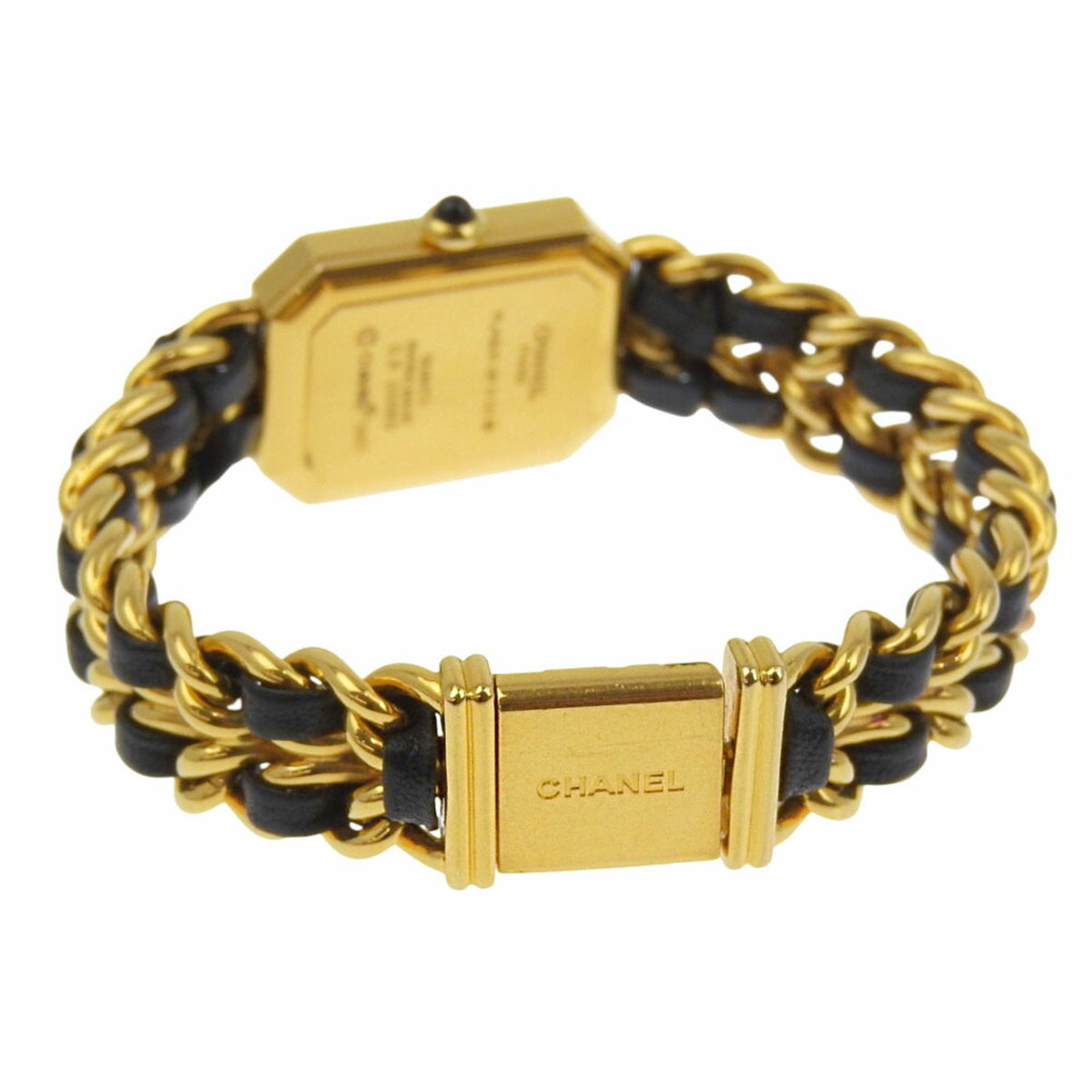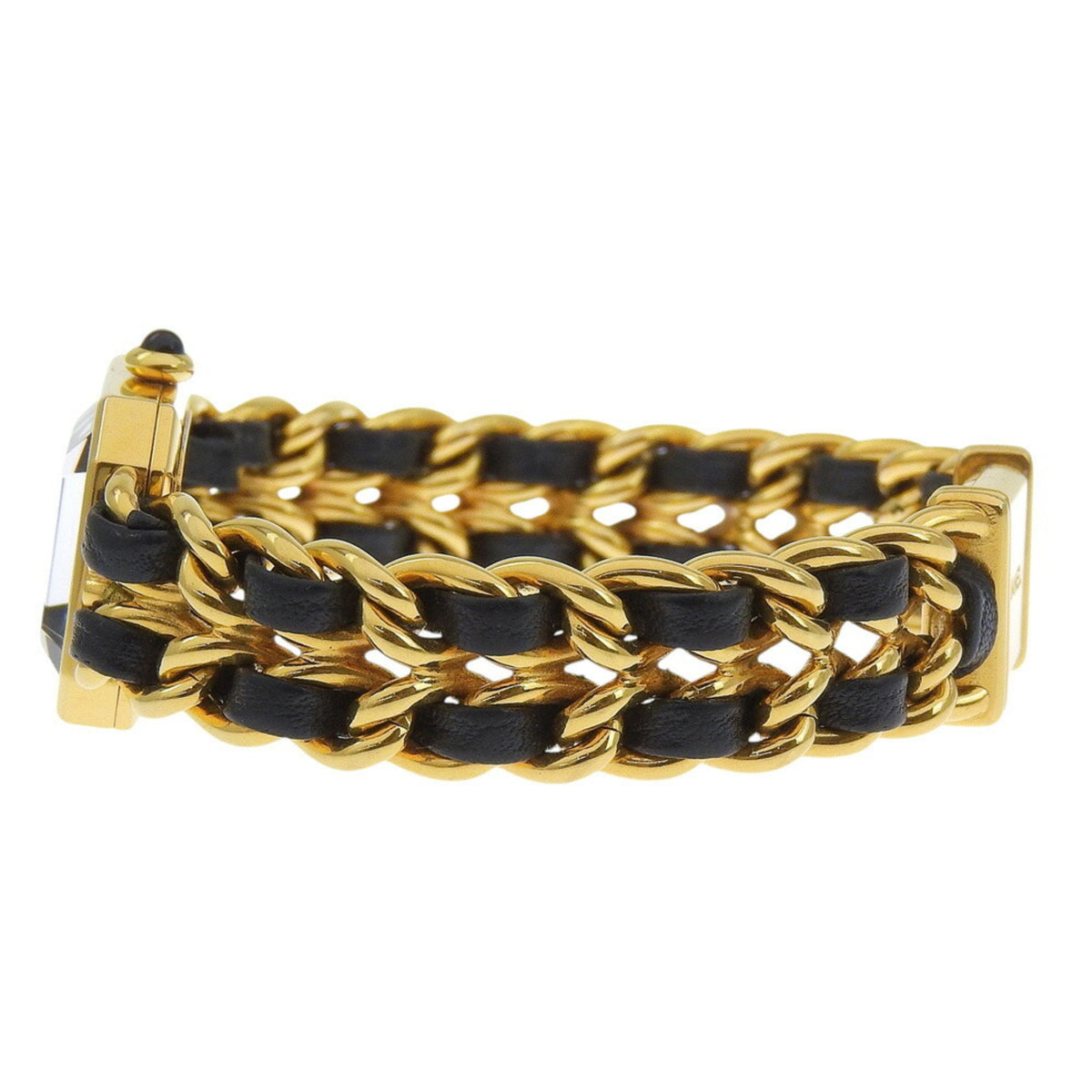 Pre-Owned CHANEL Premiere L Women's Watch H0001, Gold-Plated Leather Strap, Quartz Movement, Analog Display, Black Dial