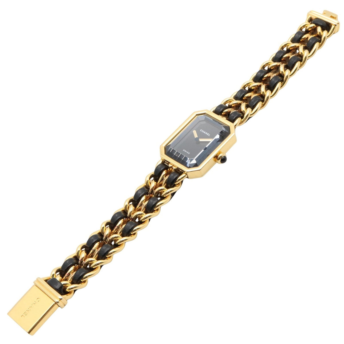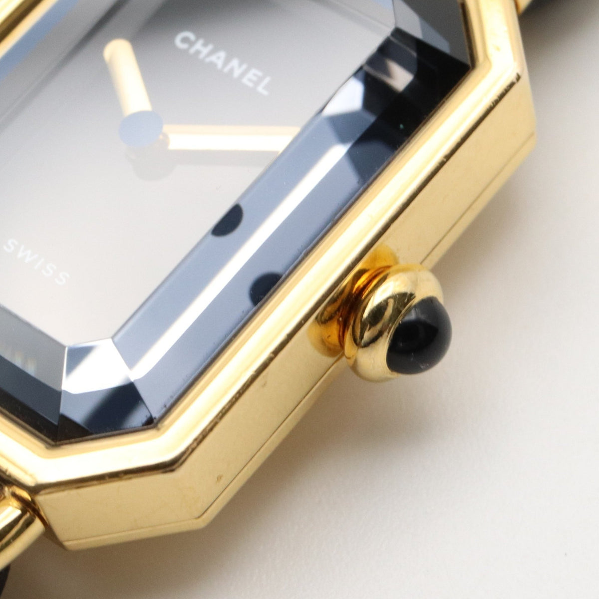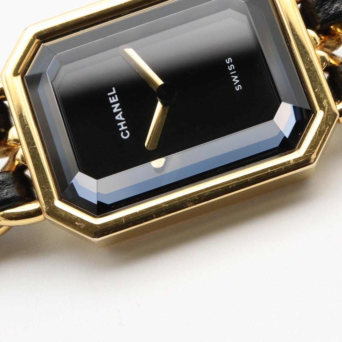 Pre-Owned CHANEL Premiere M Watch, GP (Gold Plated), Leather, Women's, Black, H0001