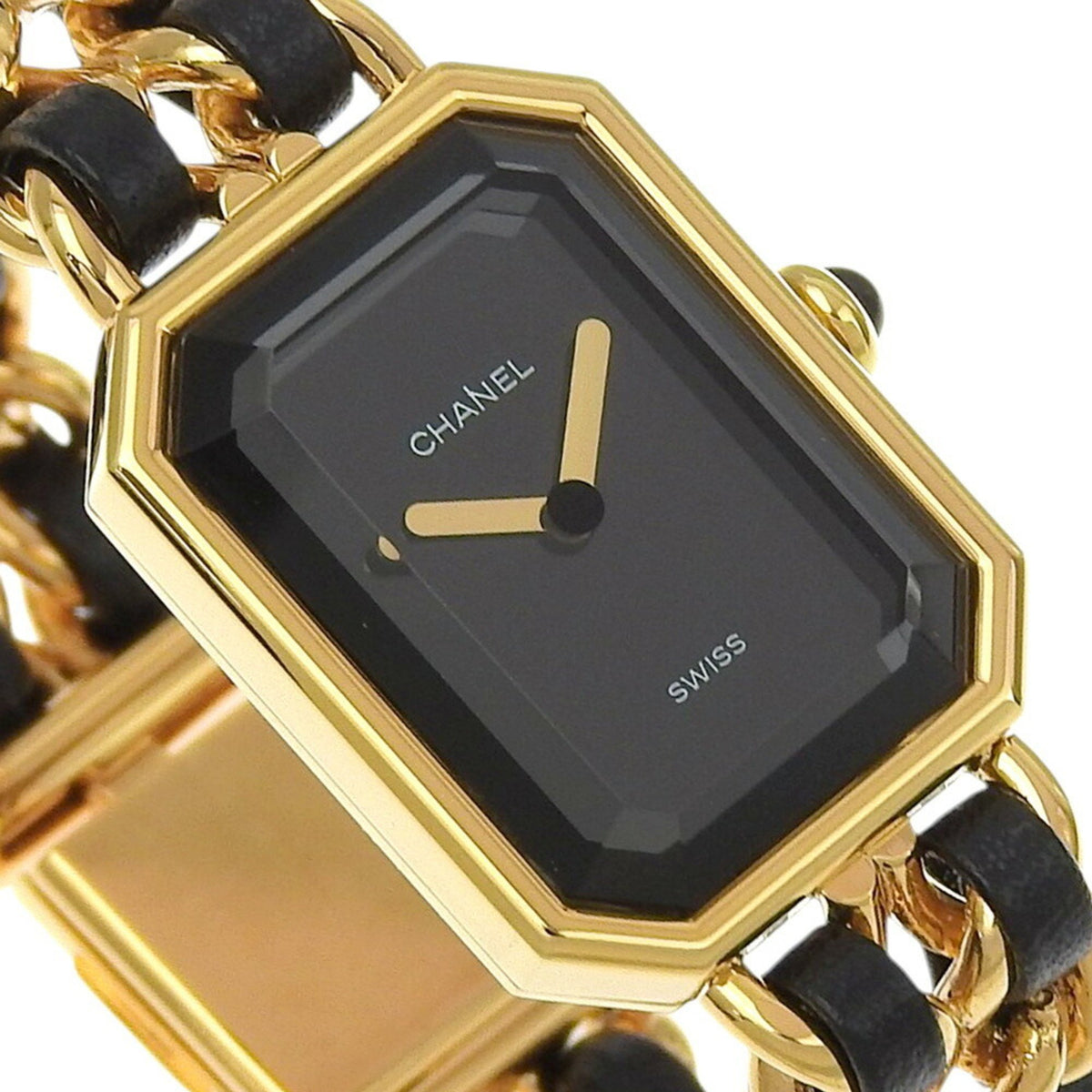 Gebrauchte CHANEL Premiere S Uhr H0001, vergoldetes Leder, Quarzwerk, analoge Anzeige, schwarzes Zifferblatt, Damen