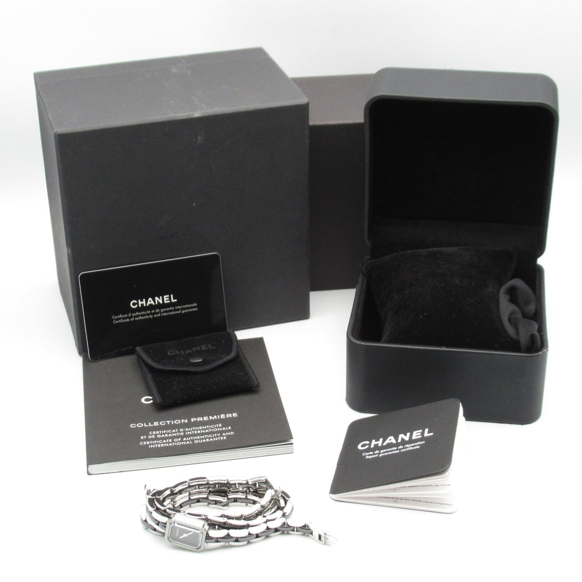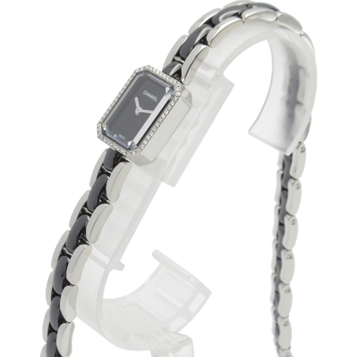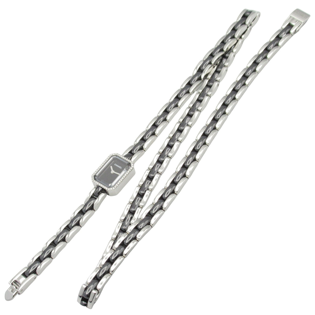 Pre-Owned CHANEL Premiere Triple Bracelet Watch with Diamond Bezel, Ceramic and Stainless Steel, Black, Women's, H3058