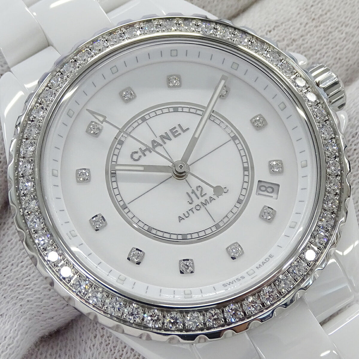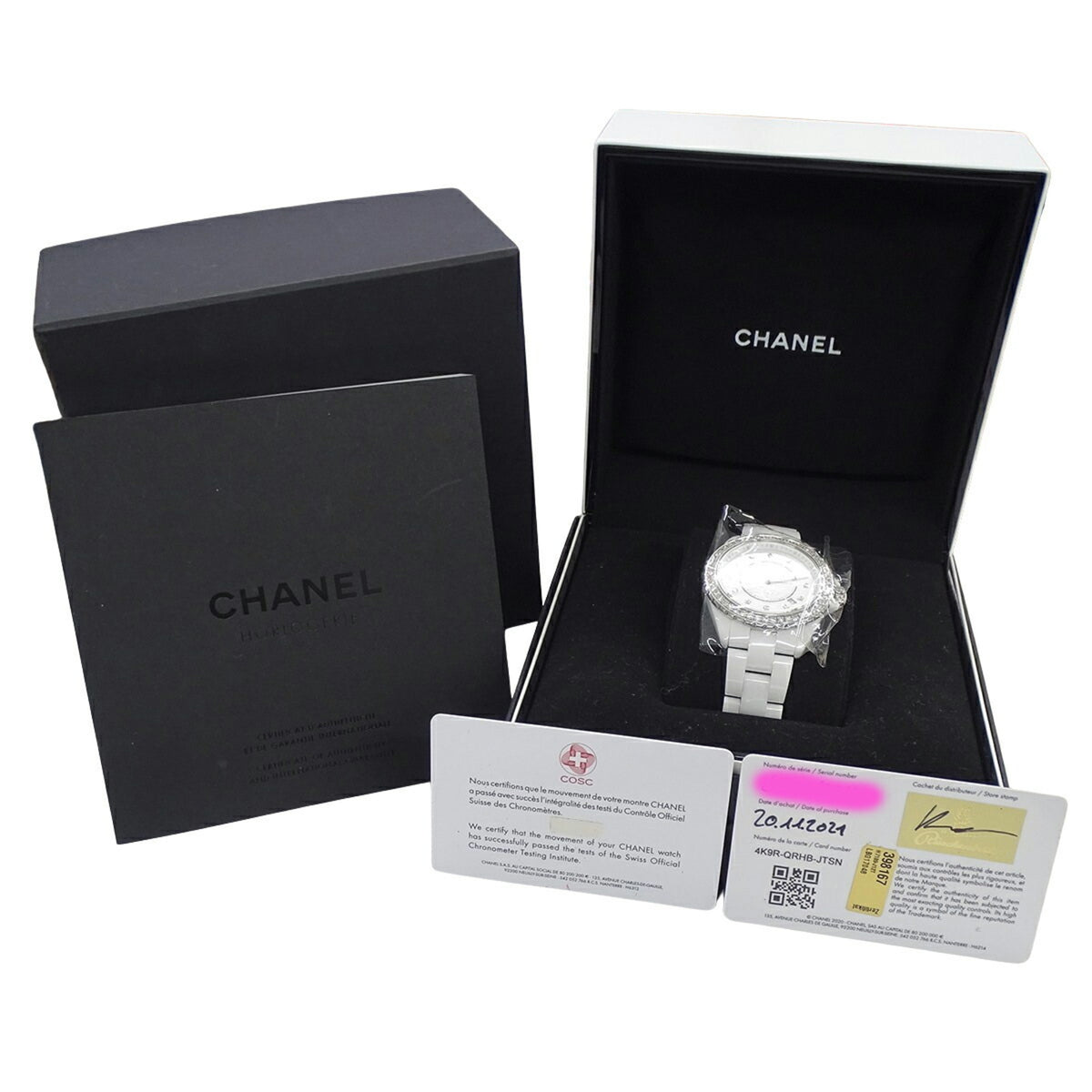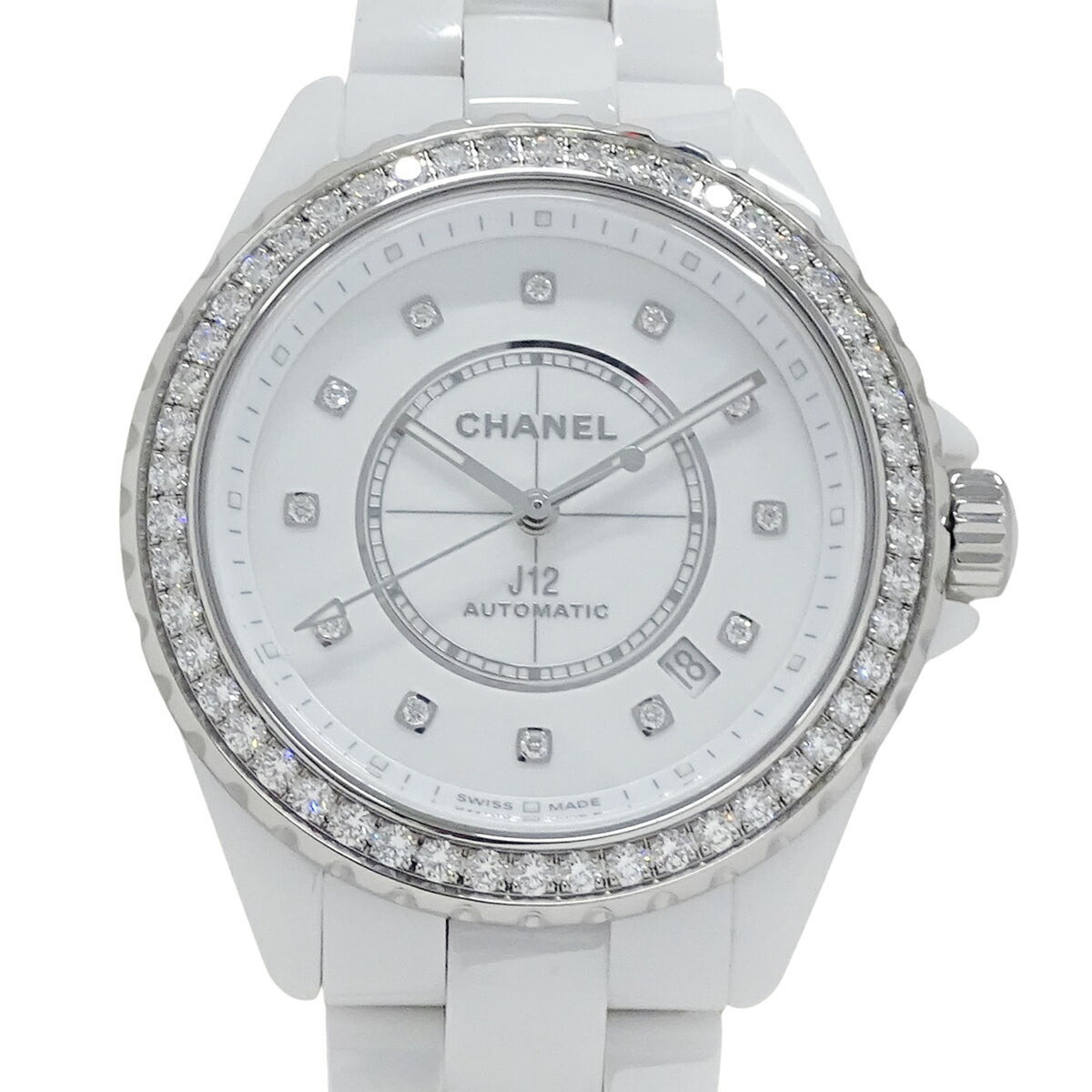 Gebrauchte CHANEL Uhr für Jungen J12 Kaliber 12.1 Diamant Datum Automatik AT Weiße Keramik Edelstahl SS H7189 Poliert