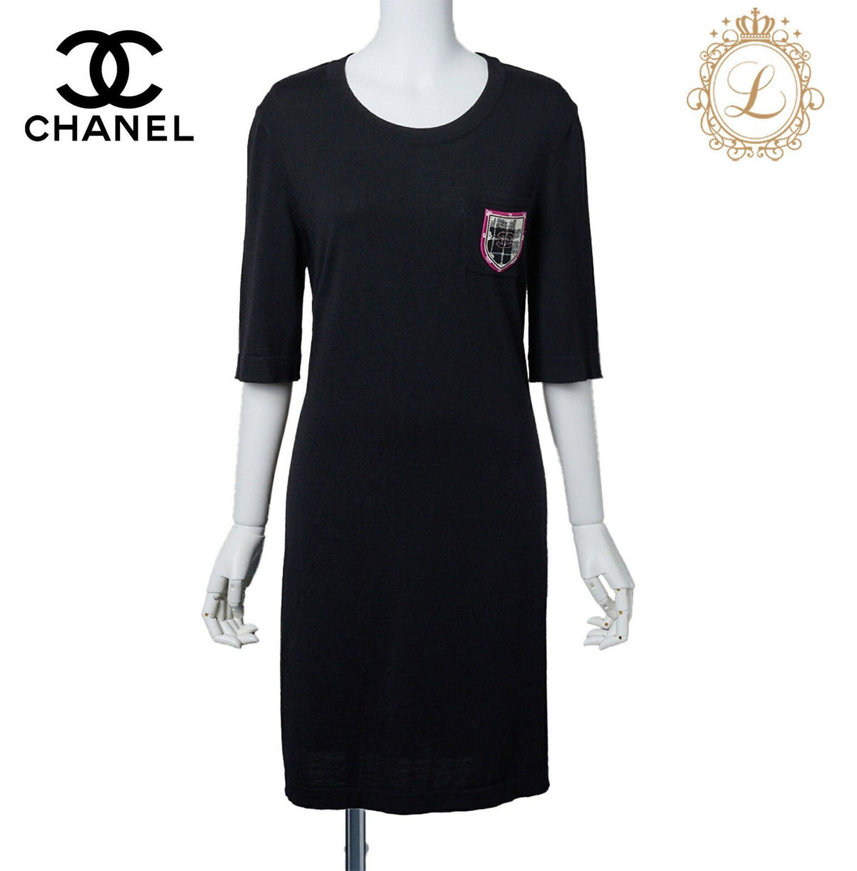 Pre-Owned One Piece Top, Coco Mark Emblem, Gestrickt, Wolle, Schwarz, Silberfarbene Metallteile, Pre-Owned