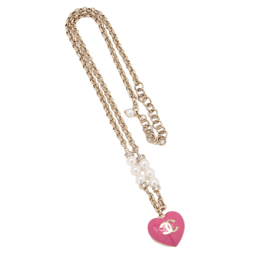 Gebrauchte Halskette, Coco Mark Herz, vergoldet, rosa, goldfarbene Hardware, gebraucht