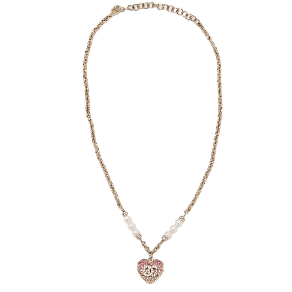 Entdecken Sie die Eleganz der CHANEL Coco Mark Herz-Strasskette GP Gold Pink C23P . Dieses exquisite Schmuckstück zelebriert Luxus und Raffinesse und besticht durch sein atemberaubendes vergoldetes Finish, das Charme und Weiblichkeit ausstrahlt. Perfekt für die moderne Frau entworfen, unterstreicht diese Kette nicht nur Ihren Stil, sondern ist auch ein zeitloses Accessoire, das jedes Outfit ergänzt.