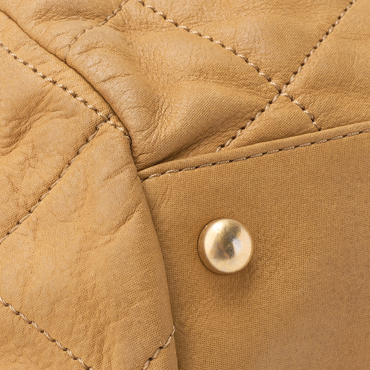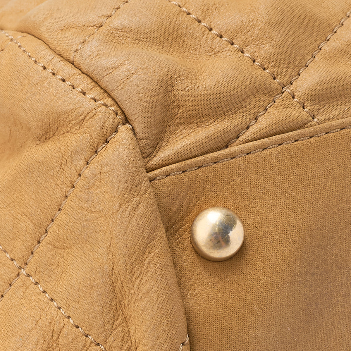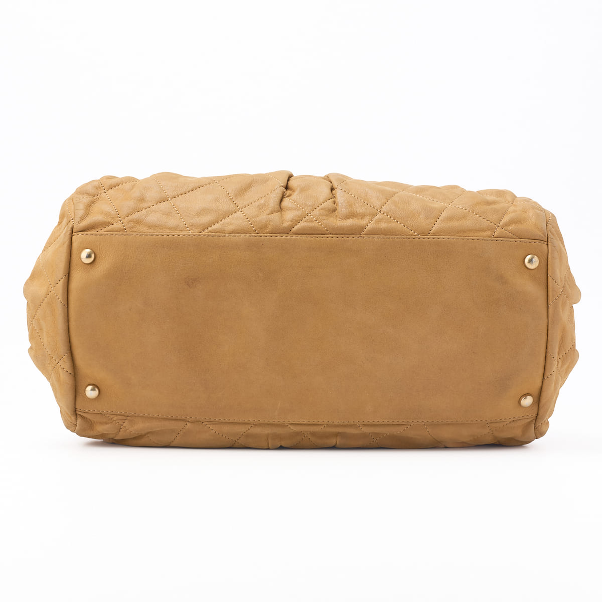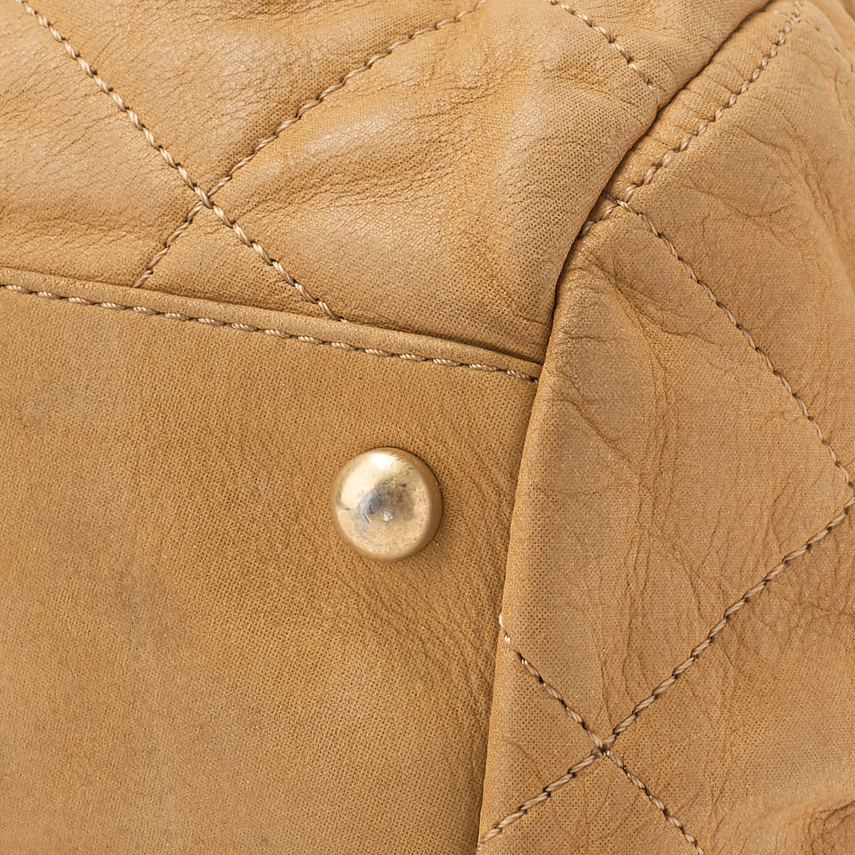Gebrauchte Umhängetasche, Coco Mark, Matelassé, Glitzerleder, Beige, Goldfarbene Metallteile, Gebraucht