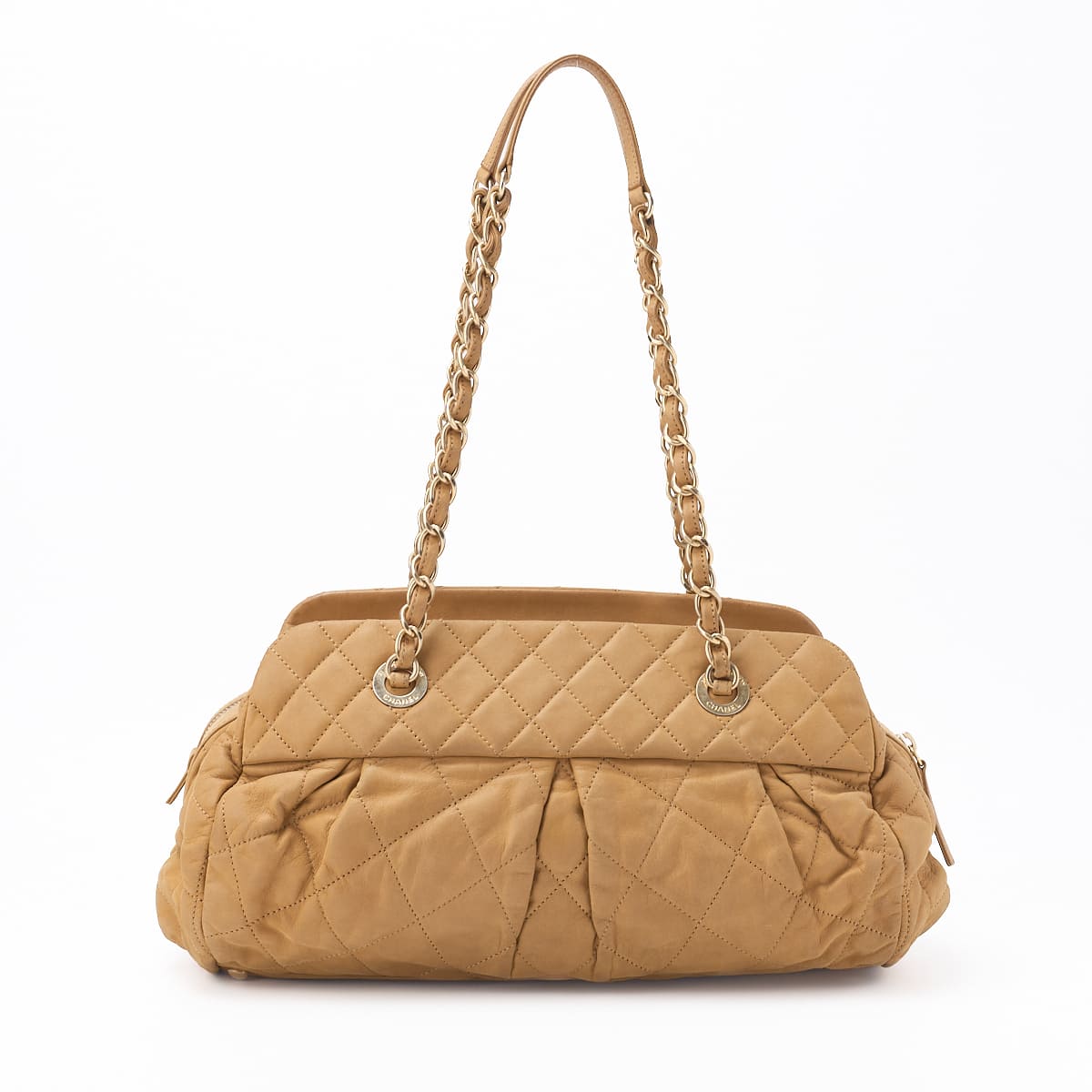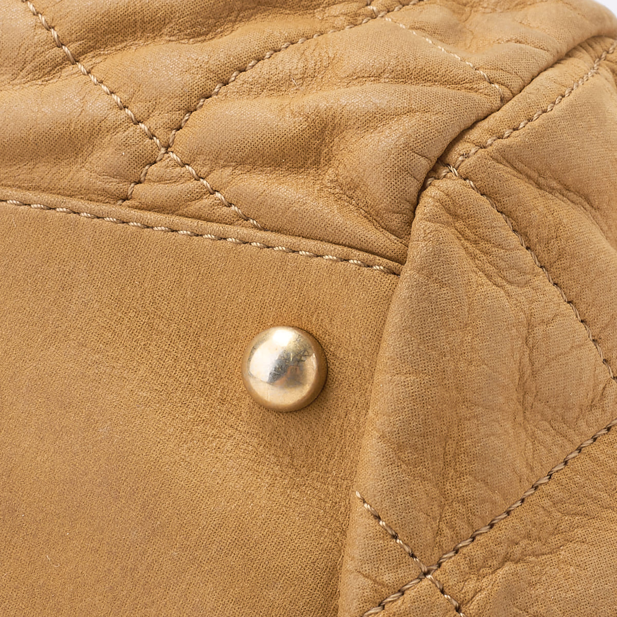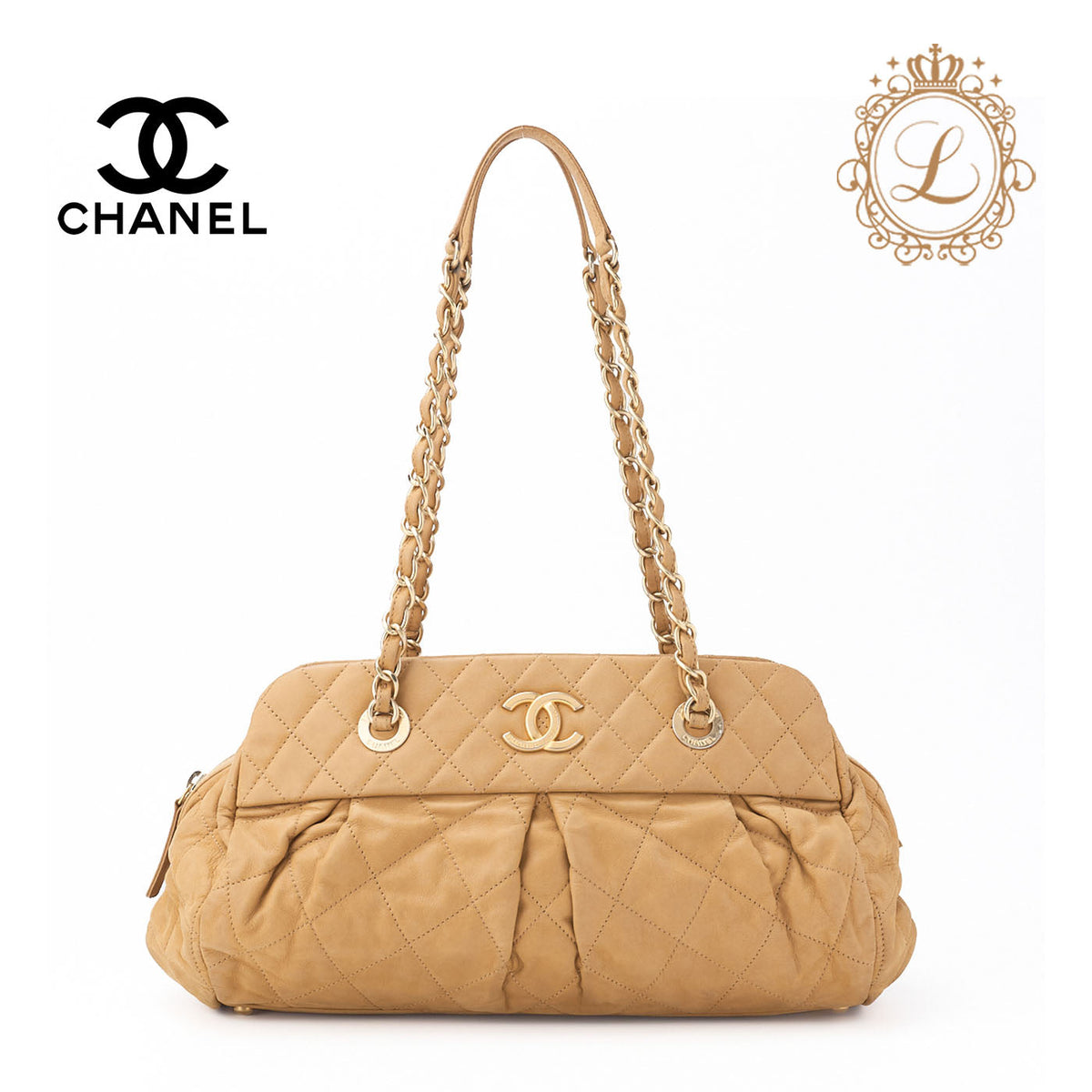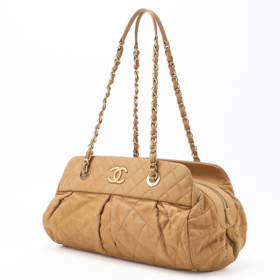 Gebrauchte Umhängetasche, Coco Mark, Matelassé, Glitzerleder, Beige, Goldfarbene Metallteile, Gebraucht
