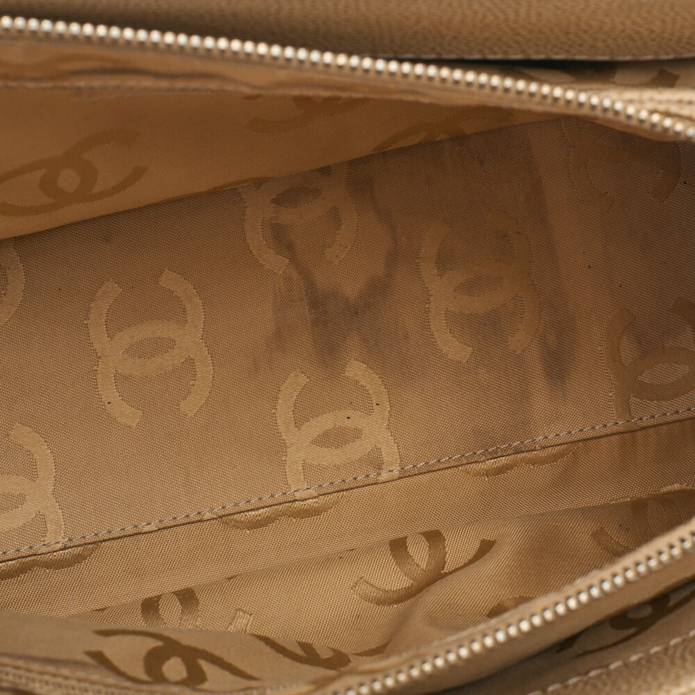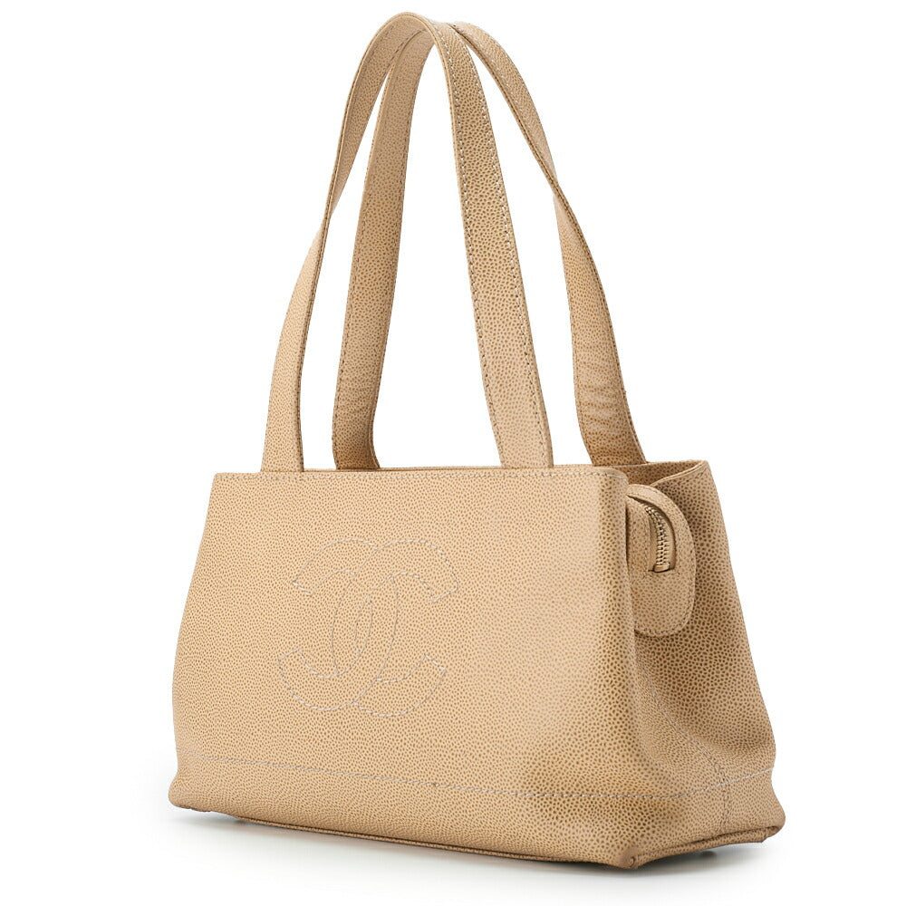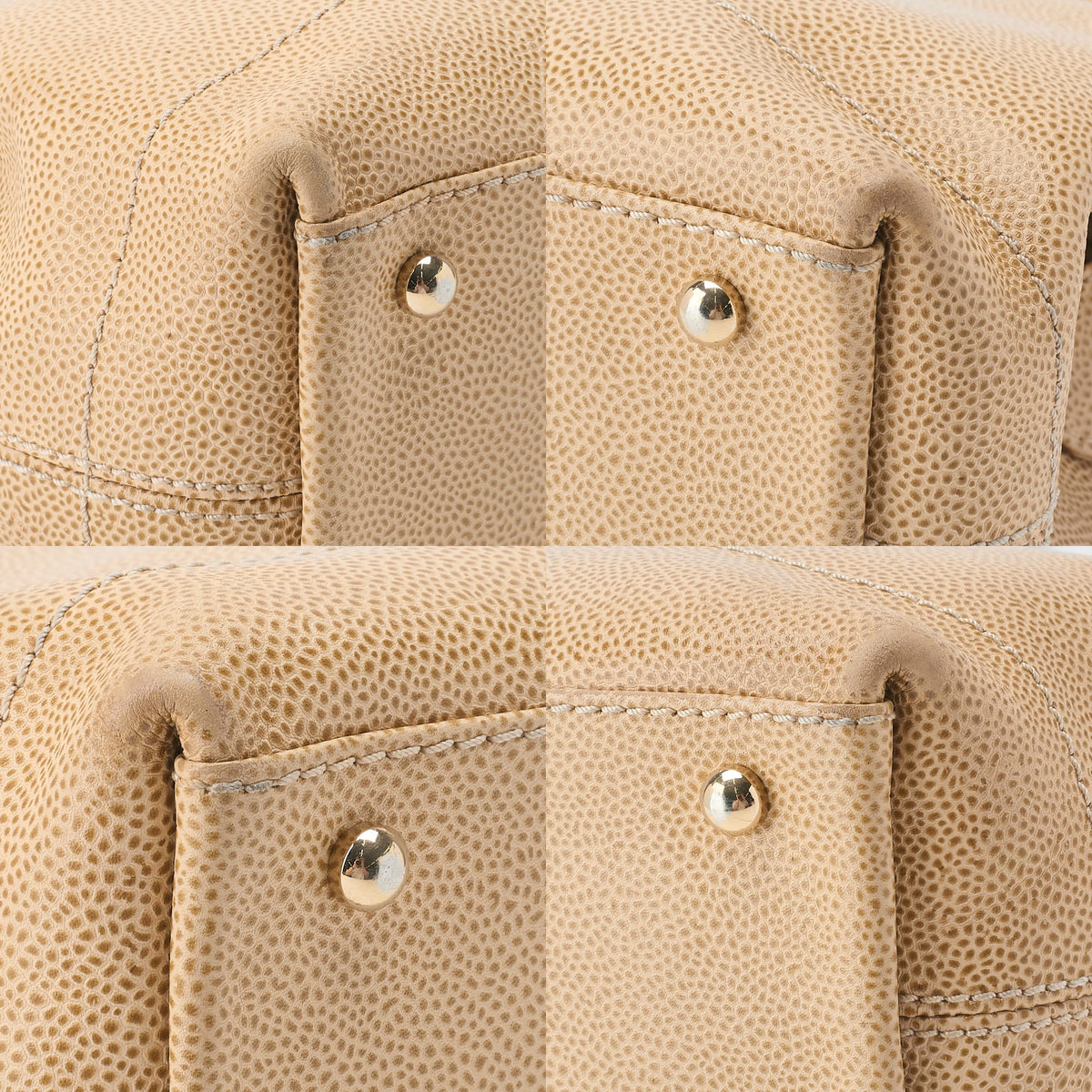 Gebrauchte Handtasche, Coco Mark, Anhänger mit Holzmuster, Kaviarhaut, Beige, goldfarbene Metallteile, gebraucht