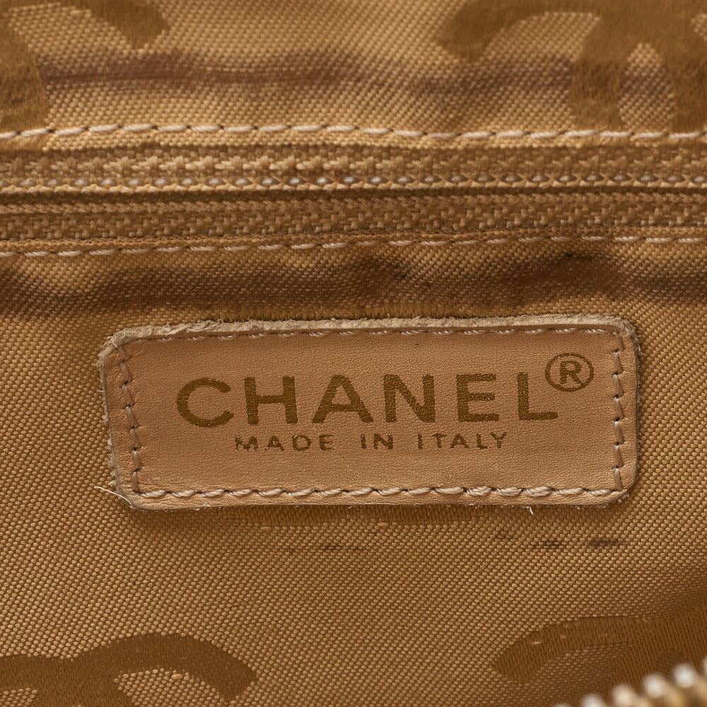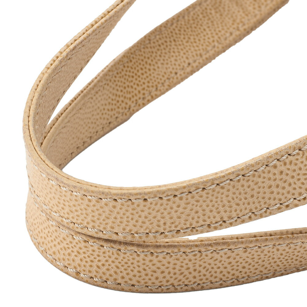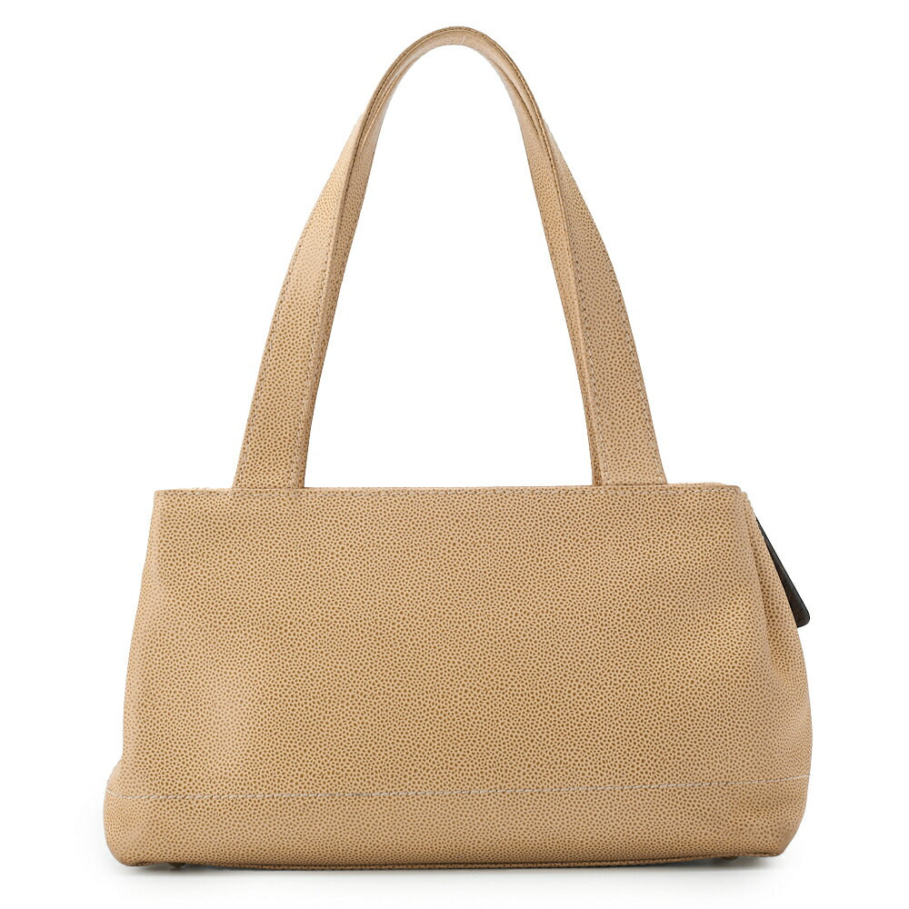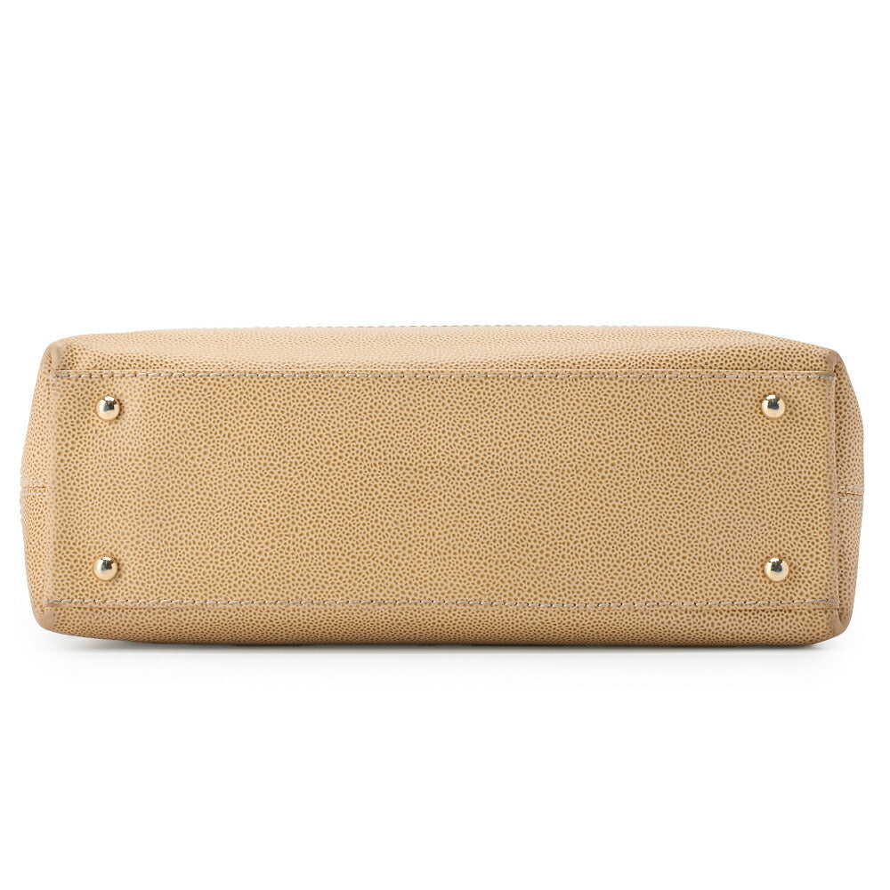 Gebrauchte Handtasche, Coco Mark, Anhänger mit Holzmuster, Kaviarhaut, Beige, goldfarbene Metallteile, gebraucht