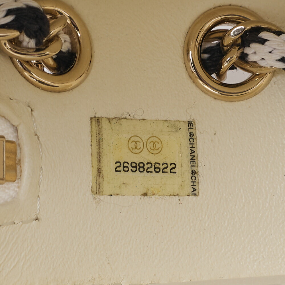 Wir präsentieren die exquisite CHANEL Cruise Line Float Chain Schultertasche , eine luxuriöse Mischung aus Lammleder und Vinyl , entworfen für die anspruchsvolle Frau. Diese atemberaubende Tasche in markanter Schwarz-Weiß-Farbkombination mit eleganten Goldbeschlägen ist der Inbegriff eines High-Fashion-Accessoires. Mit den Maßen ca. 18 cm (B x H x T) und einer Schulterlänge von ca. 122 cm vereint sie Stil und Funktionalität perfekt und ist eine unverzichtbare Ergänzung Ihrer Garderobe.