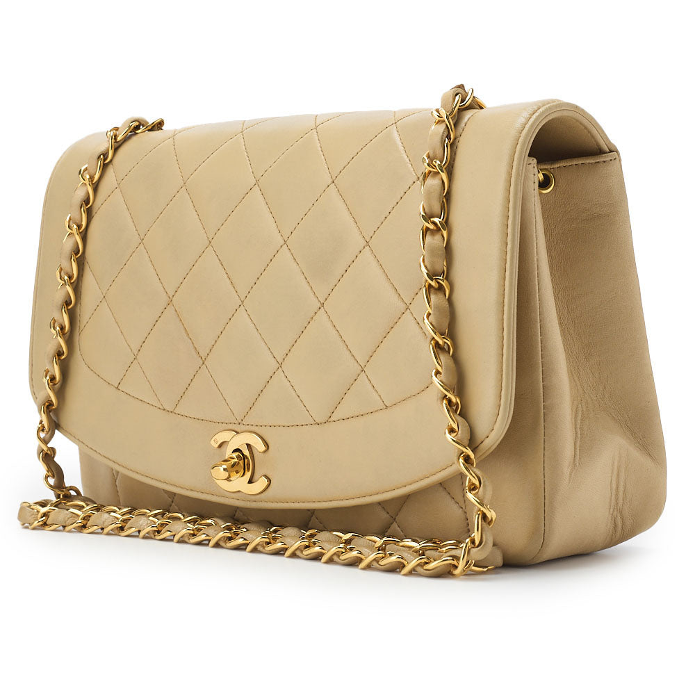 Gebrauchte Diana Flap Chain Schultertasche, Lammleder, Beige, goldfarbene Metallteile, gebraucht