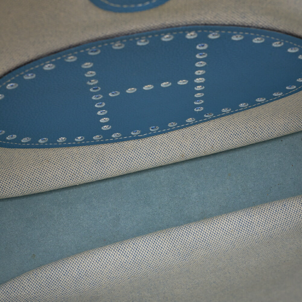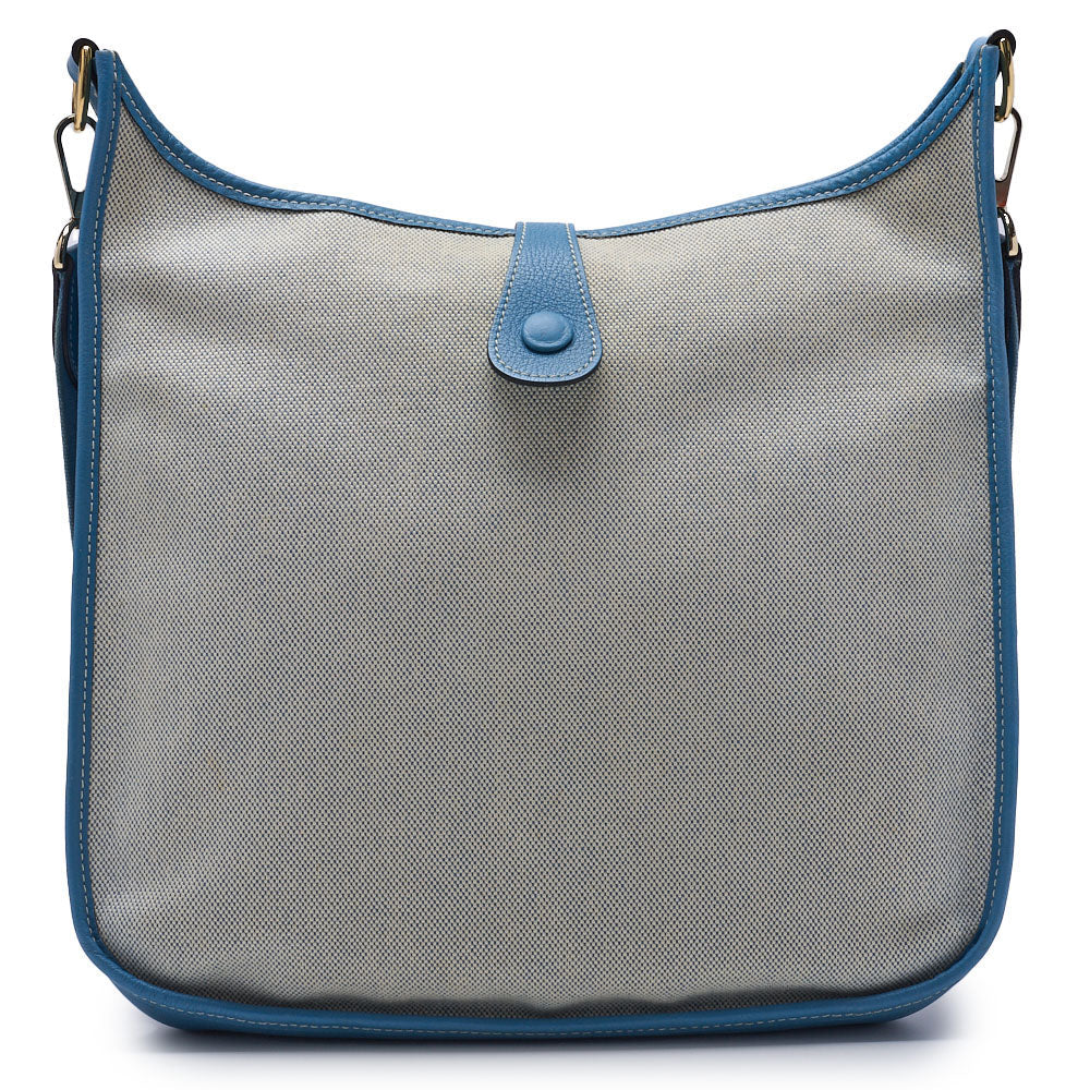 Wir präsentieren die HERMES Hermes Evelyn GM 1 Ann Schultertasche in schickem Toile Ash Blue Jean mit atemberaubenden Goldbeschlägen – ein zeitloses Stück, das Eleganz und Funktionalität verkörpert. Diese exquisite Tasche der renommierten Luxusmarke HERMES ist perfekt für Frauen, die Mode mit einem Hauch von Funktionalität schätzen.