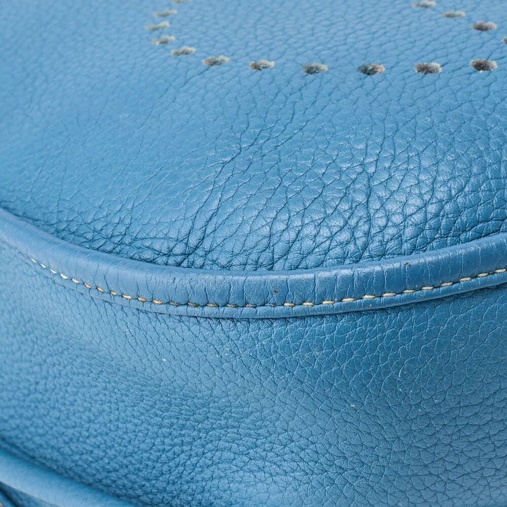 Entdecken Sie die Eleganz und Raffinesse der HERMES Hermes Evelyn PM 2 de Schultertasche in einem atemberaubenden Blue-Jeans -Ton, mit luxuriösem Tryon Clemence-Leder und schicken silbernen Metallbeschlägen. Diese exquisite Damentasche ist nicht nur ein modisches Statement, sondern auch ein vielseitiger Begleiter für jeden Anlass.