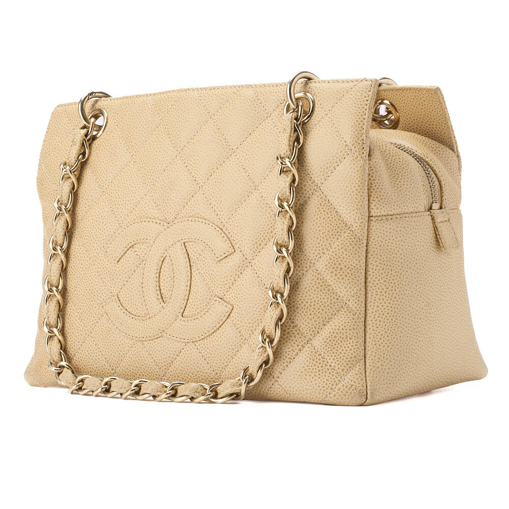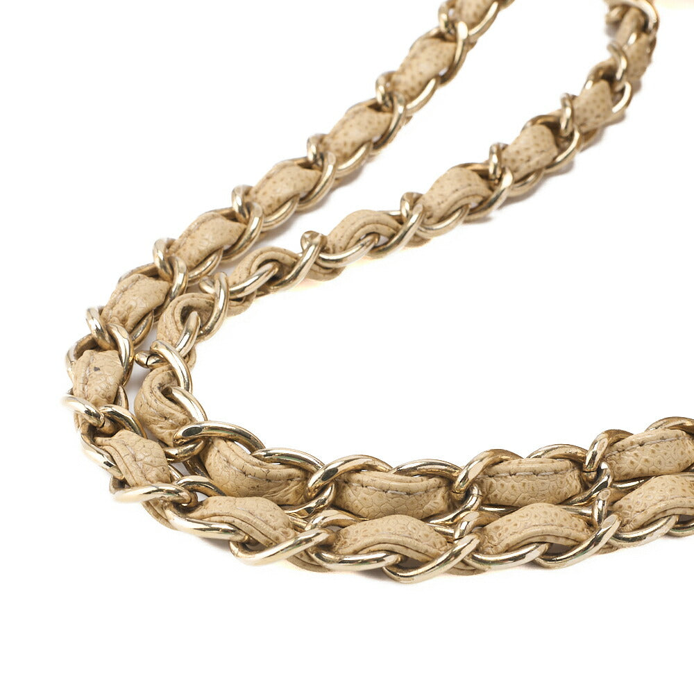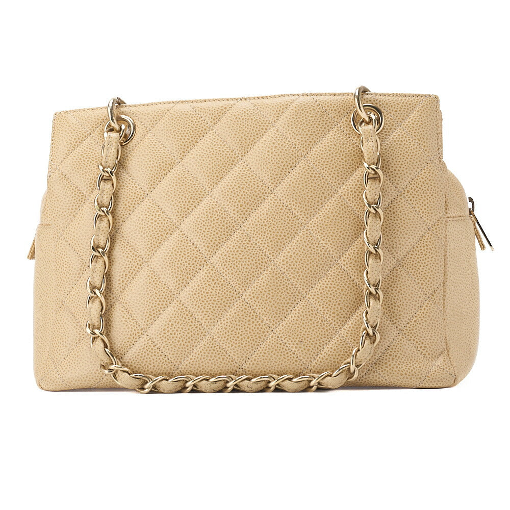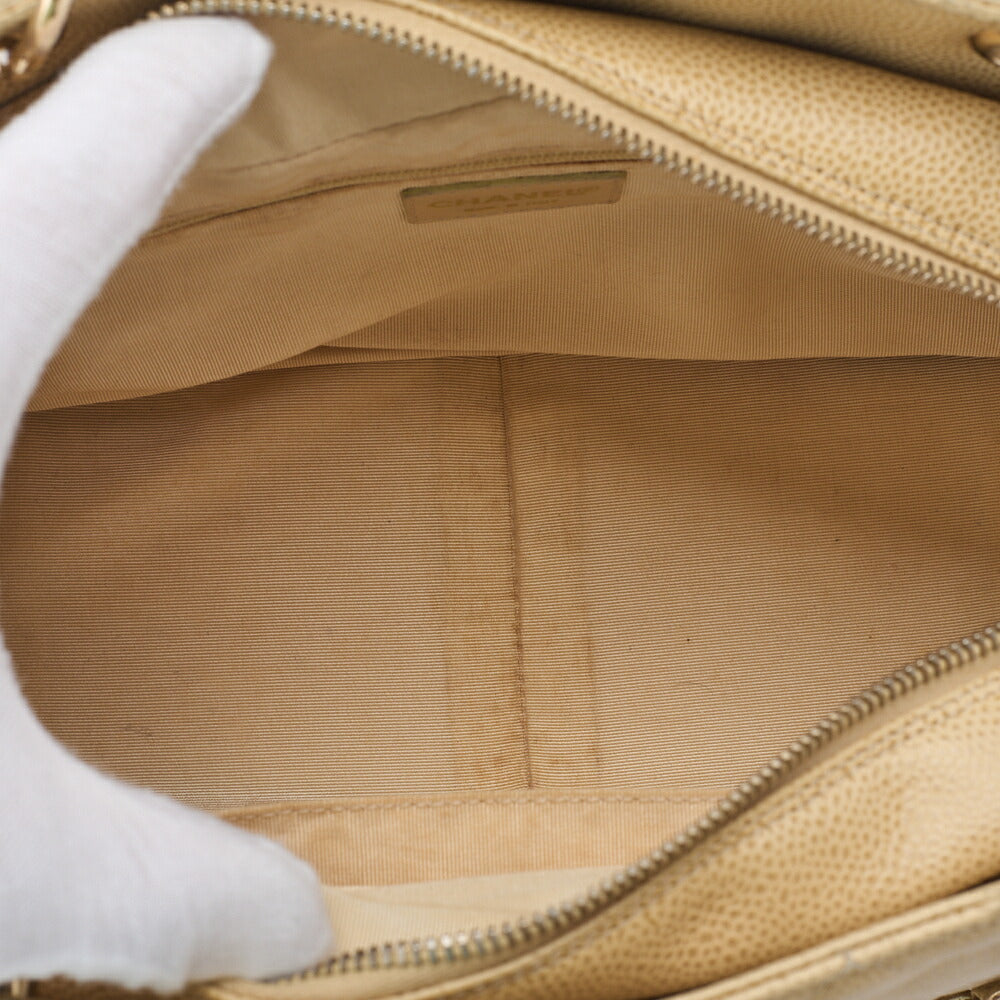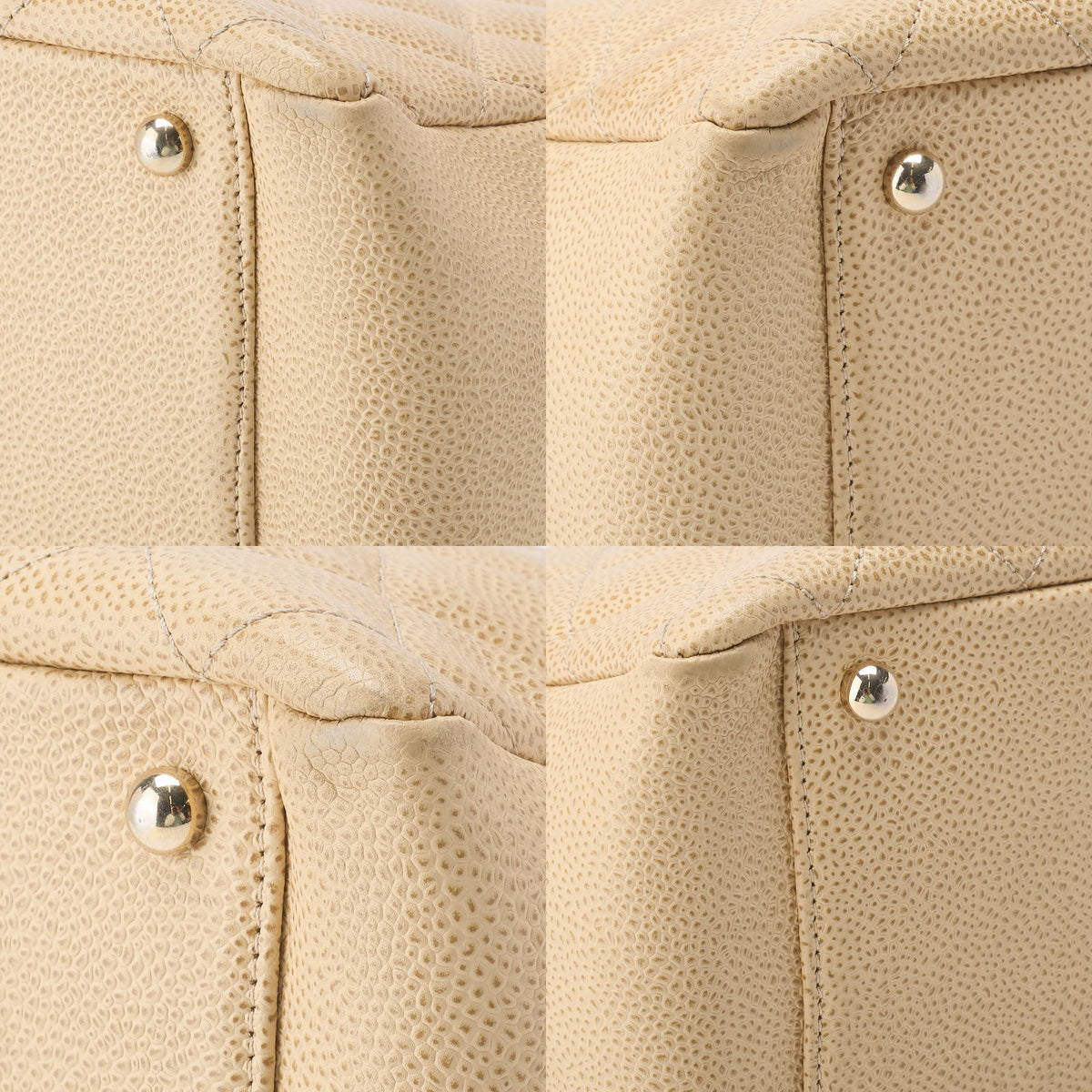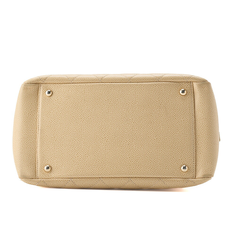 Gebrauchte Handtasche Matelassé Kaviarhaut Beige Goldfarbene Hardware Gebraucht