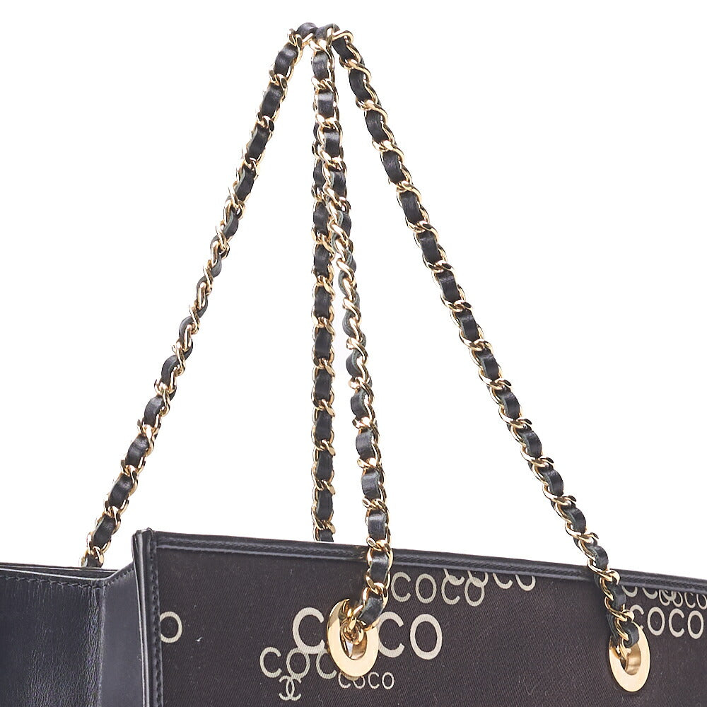 Erweitern Sie Ihre Accessoire-Auswahl mit der exquisiten CHANEL Handtasche COCO Pattern . Diese atemberaubende Handtasche präsentiert das ikonische Coco Mark Logo, meisterhaft gefertigt aus strapazierfähiger Baumwolle in klassischem Schwarz, ergänzt durch luxuriöse Goldmetallbeschläge. Perfekt für jeden Anlass, vereint diese Tasche mühelos Eleganz und Funktionalität.