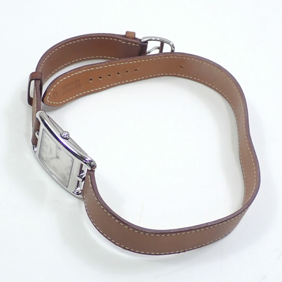 Pre-Owned Herm?s Cape Cod Double Tour Women's Quartz Watch, Stainless Steel with Leather Strap, CC2.710, Battery-Operated, Brown, C2214833