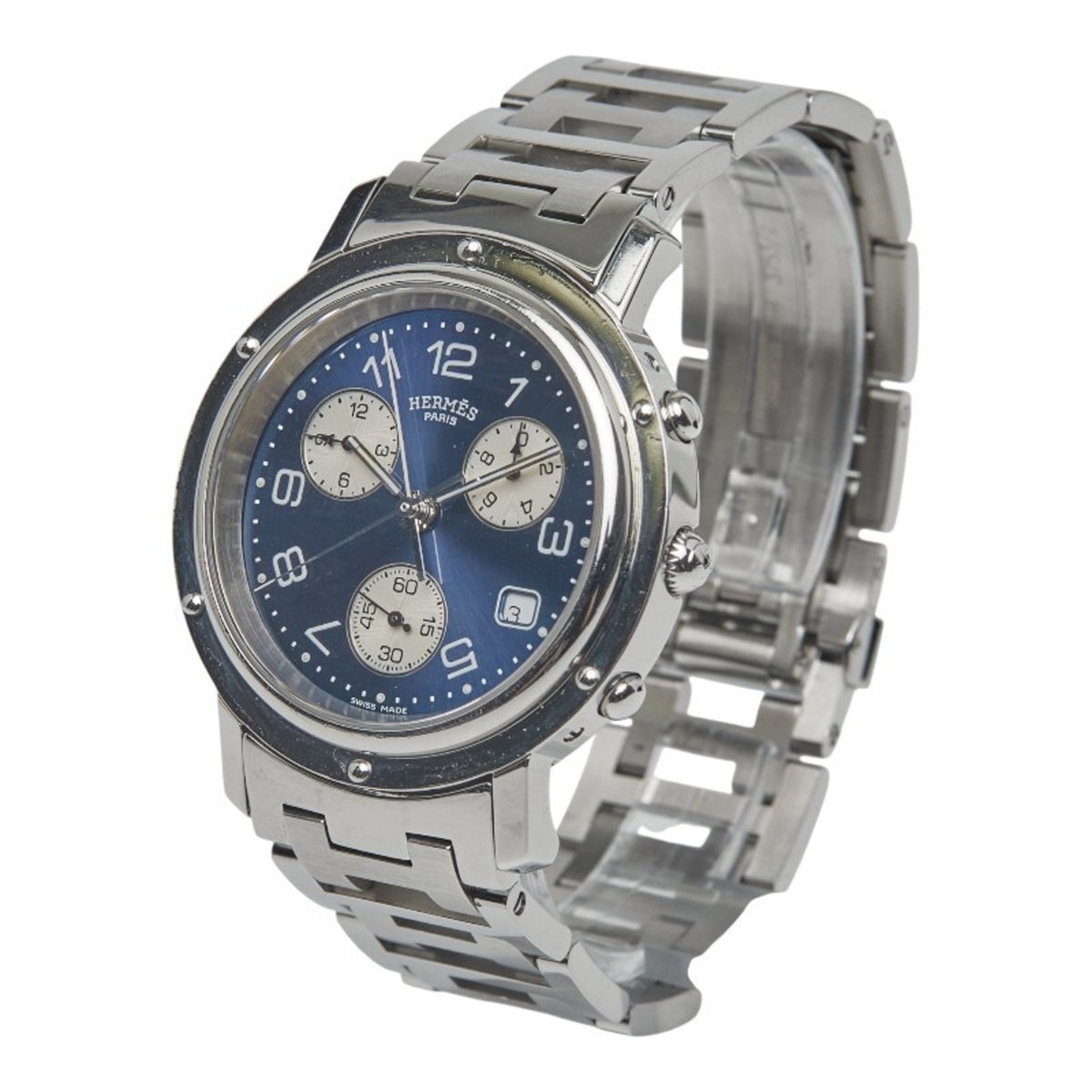 Pre-Owned Herm?s Clipper Watch CL1.910 Quartz Navy Dial Stainless Steel Men's HERMES