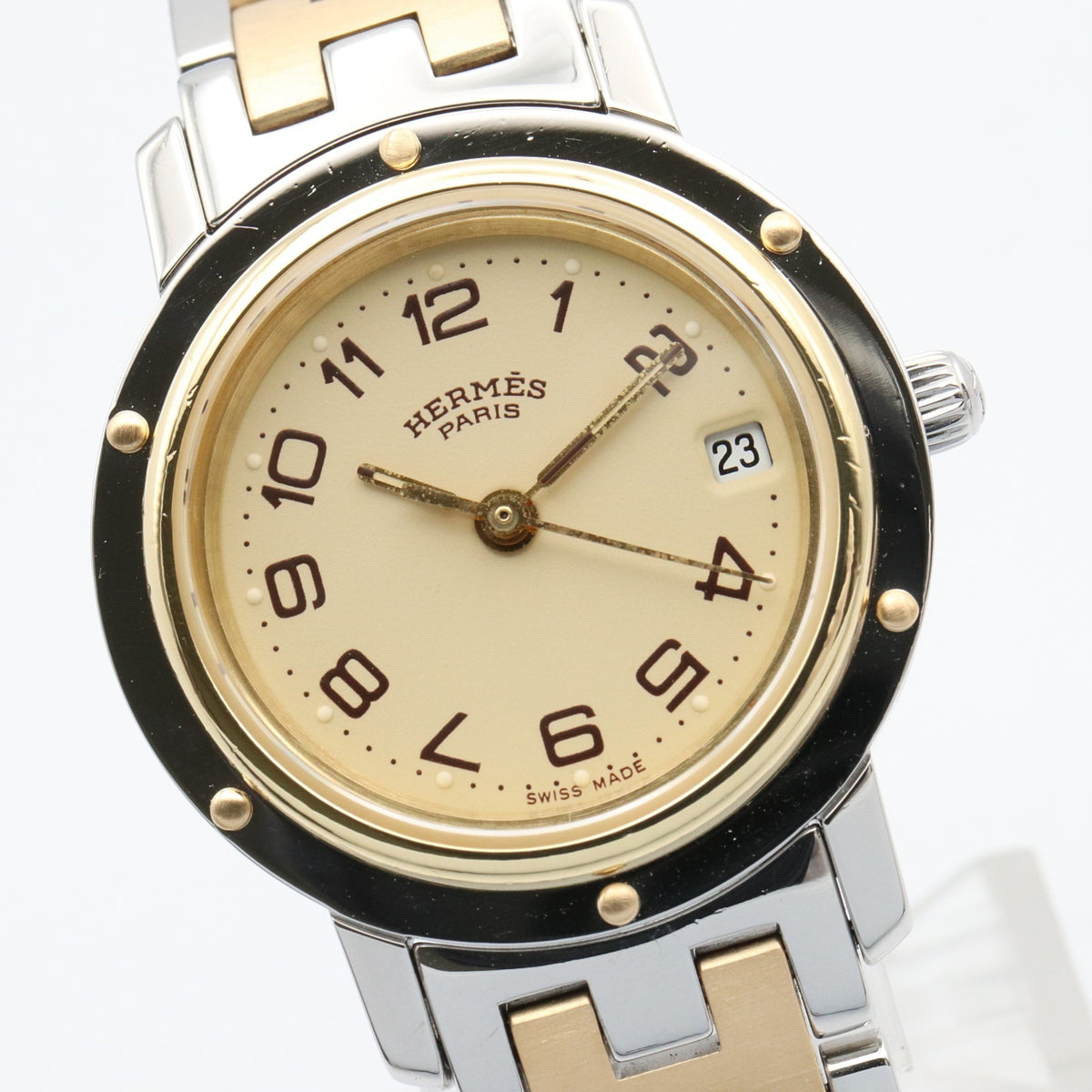 Pre-Owned Herm?s Clipper Watch, GP (Gold Plated) Stainless Steel, Women's, Ivory, CL4.220